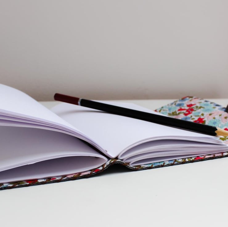 All lined with a gorgeous floral (or non floral) fabric and filled with plain paper, lined paper, recycled paper or watercolour paper.
