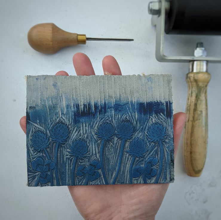 Each design is created using hand carved plate of traditional lino, carved with specialist tools and printed with a hand wound press. Every print is unique and completely individual due to its handmade nature. It's always so satisfying peeling back to paper to reveal to final print.