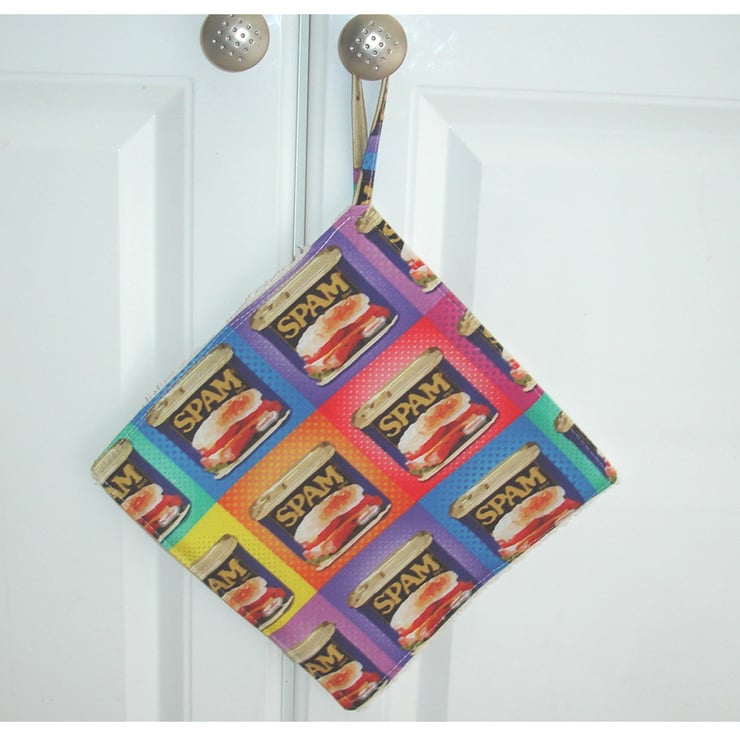 A Pot Holder backed with a cream towel fabric - useful for mopping up around the kitchen,