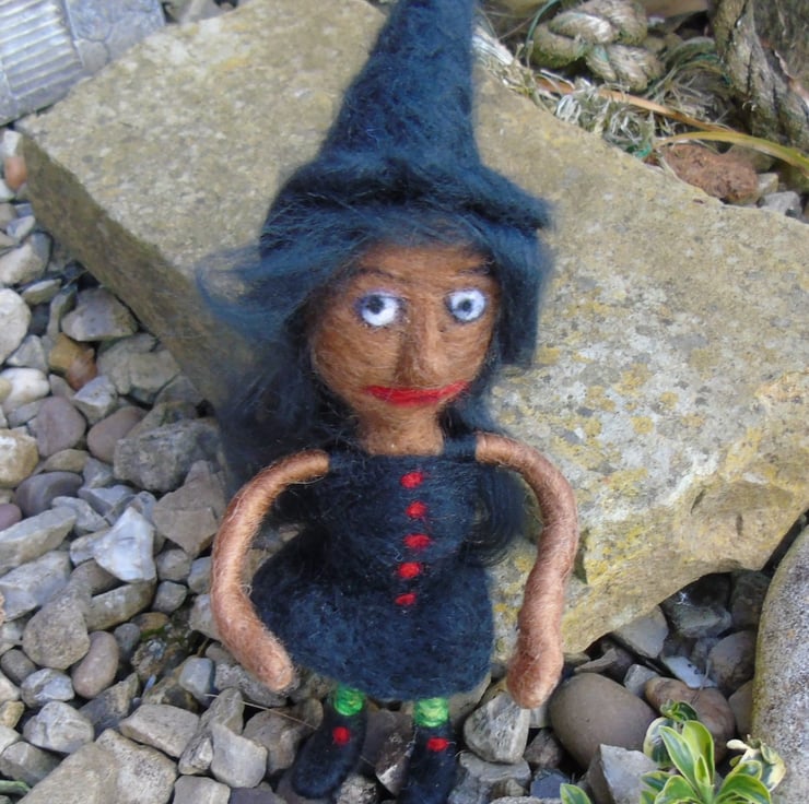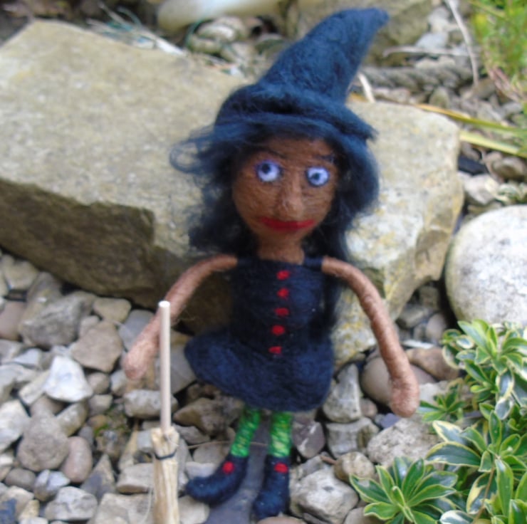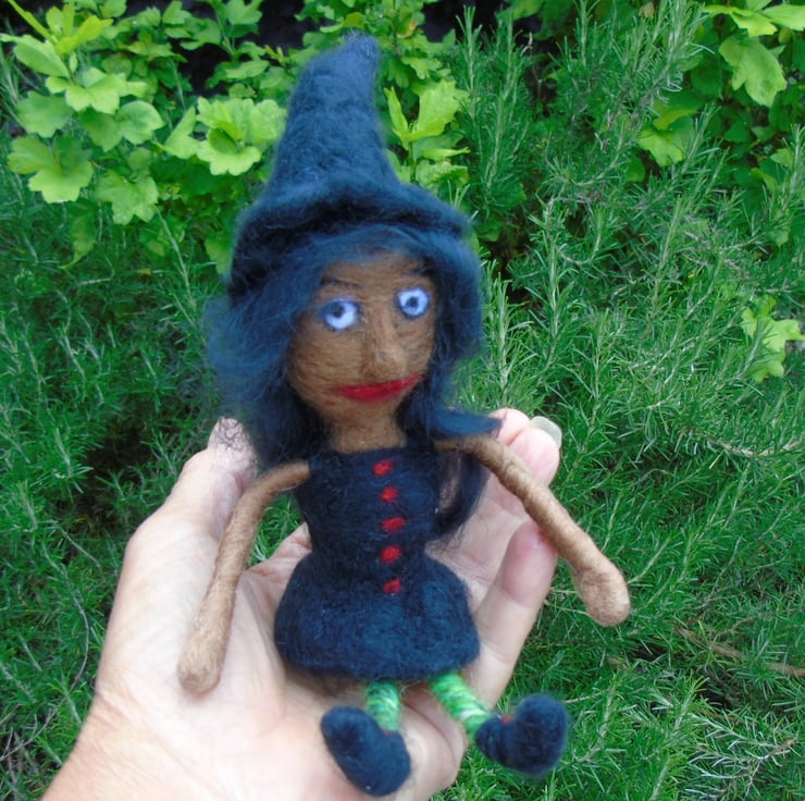 A one of a kind hand made witch doll. Poseable arms and legs.