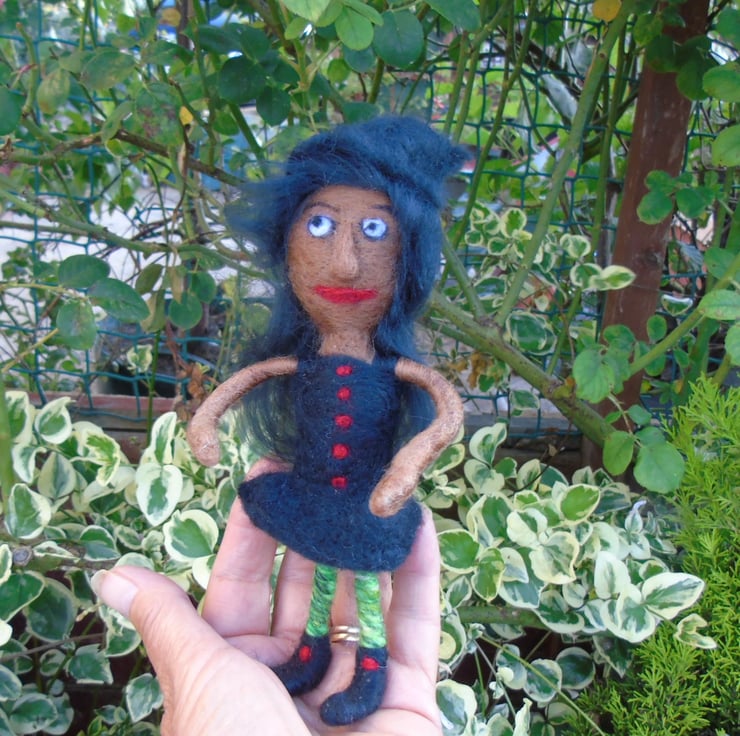 Made from dyed sheep's wool with internal wires. She measures 8 ins tall.