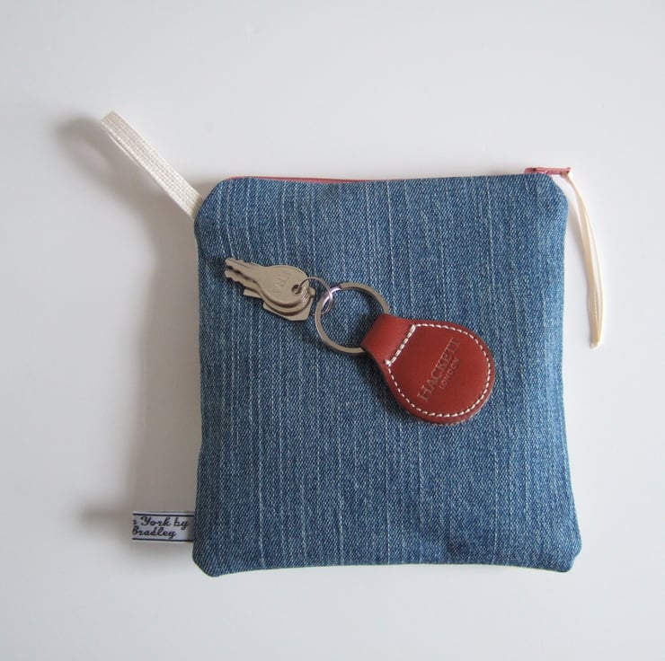 The back is made from faded recycled denim to give it some edge, and it is finished off with my own embroidered label.