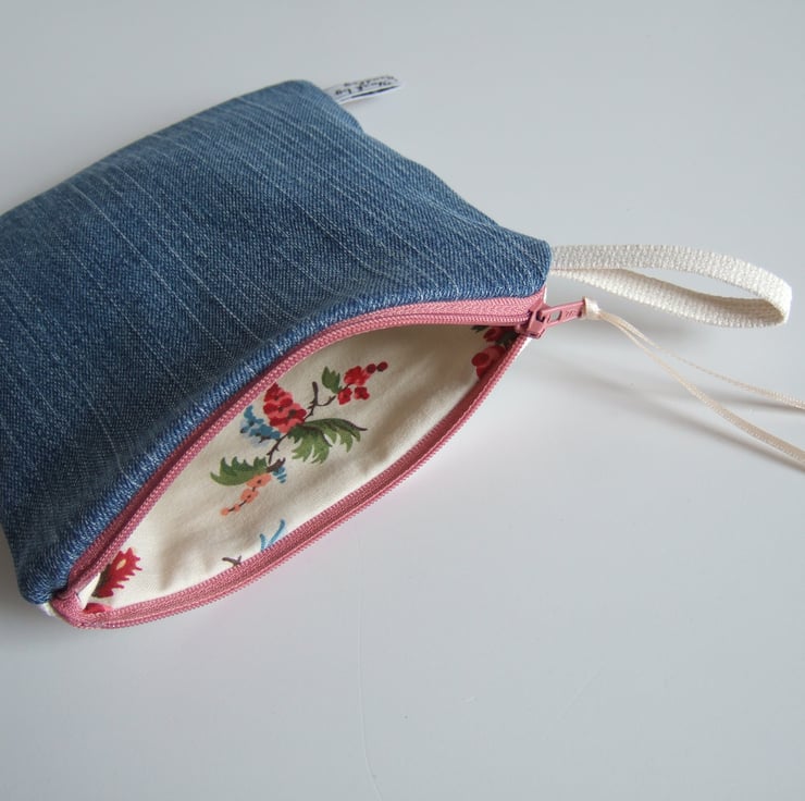 It measures 16 cm by 17 cm with a 16 cm long dusty pink zip opening.