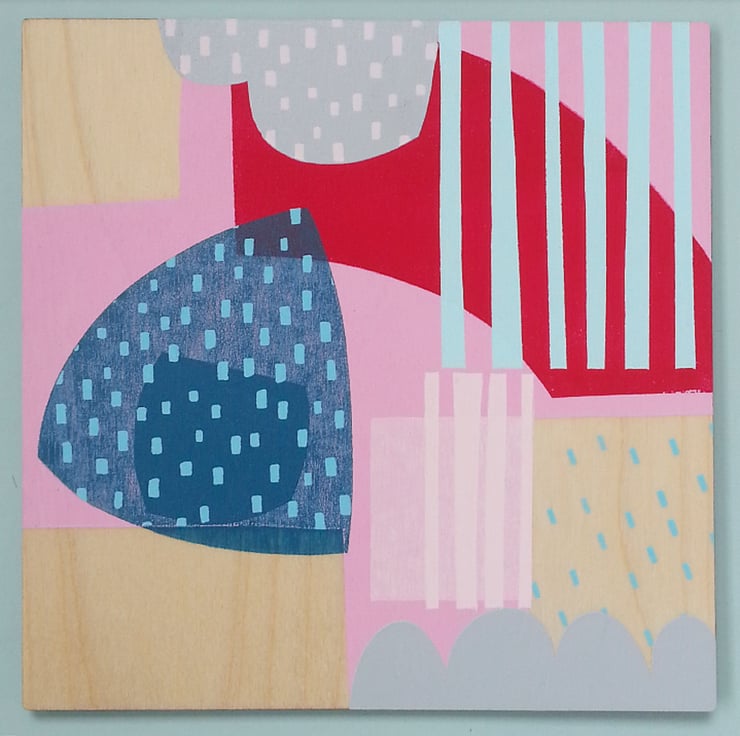 This colourful, one of a kind abstract wooden picture has been individually screenprinted by hand onto a 7" birch ply tablet. I've used some of my favourite colour combinations in several layers to create a unique print, with some areas left blank to show off the lovely grain of the wood.