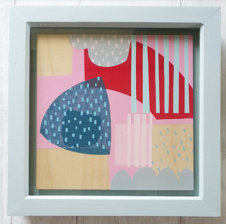 One day whilst tidying my workroom I found some plywood tablets leftover from a previous project which I had forgotten about, and since I love experimenting with colour combinations, pattern and shapes, I decided to make a few one-off prints! They are very much inkeeping with my little houses and necklaces in spirit, being quite free and unplanned, producing a completely unique effect.
