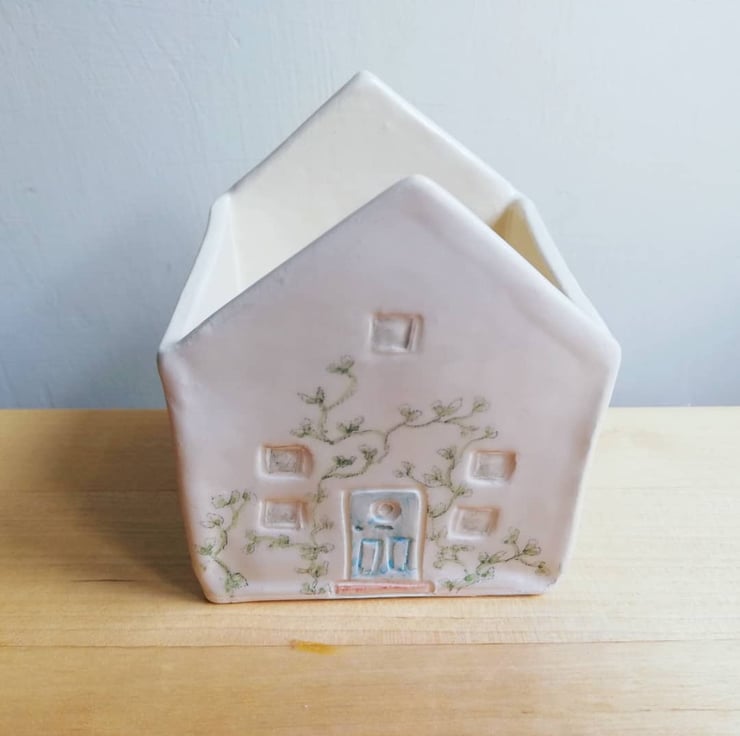 I enjoy making these little house pots, each house is unique because they are made by hand they have their own personality.