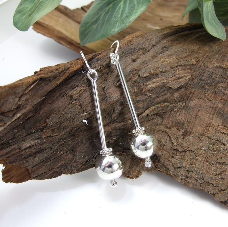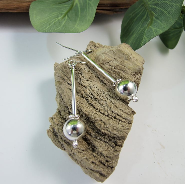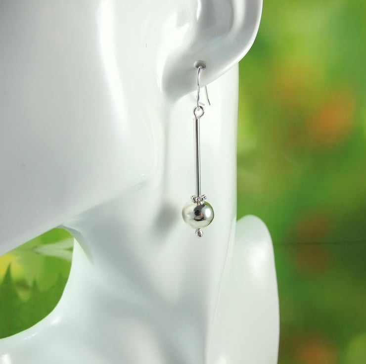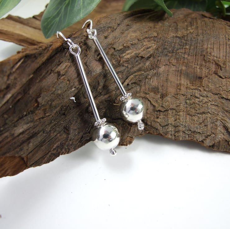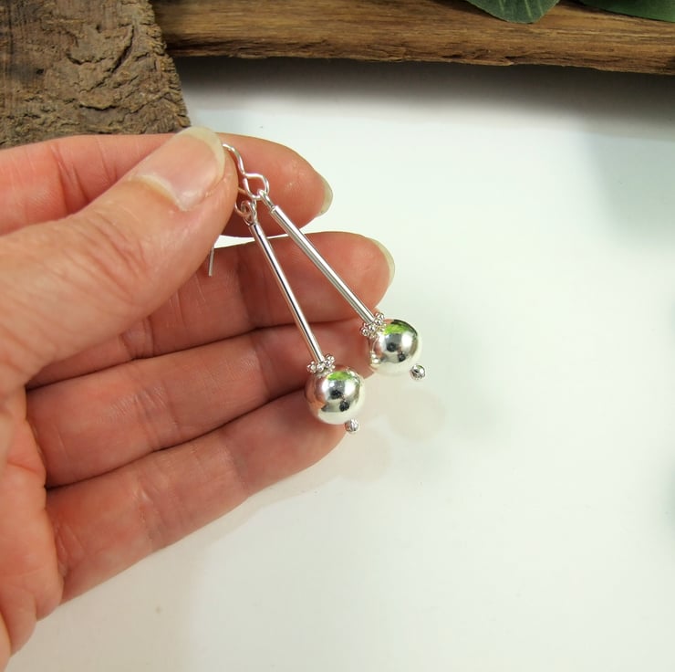 Statement Earrings, Sterling Silver Sphere and Stick Earrings.
