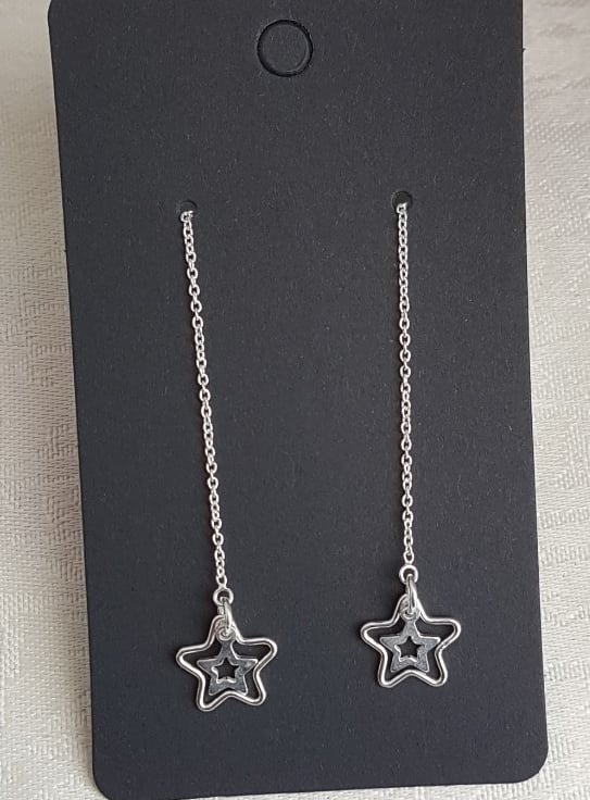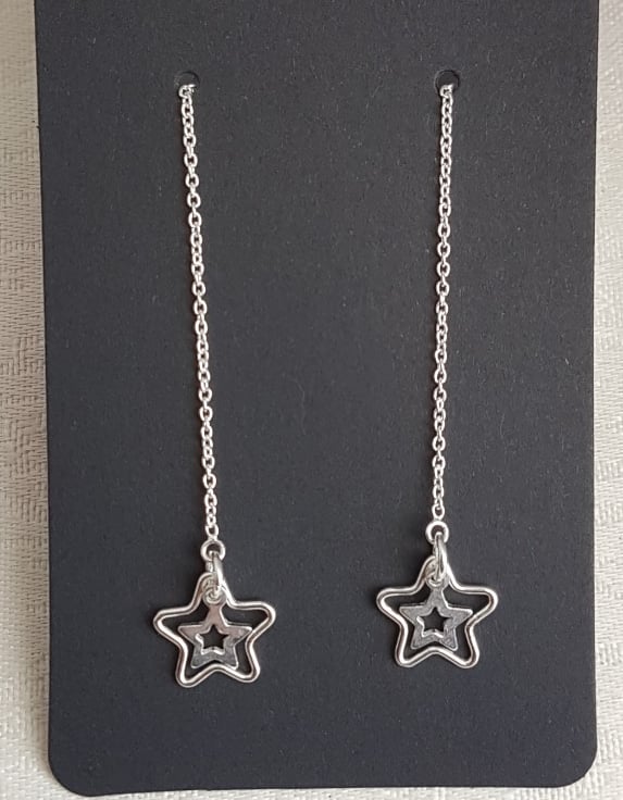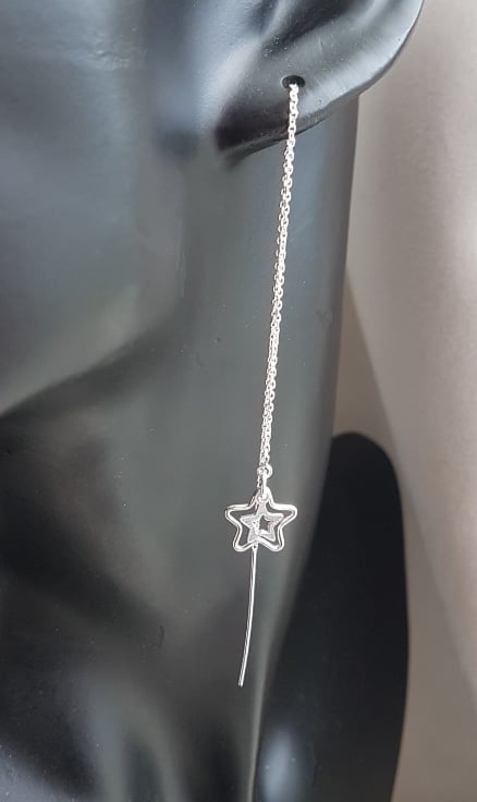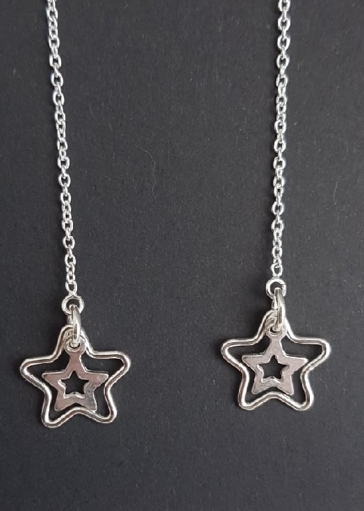 Gorgeous Sterling Silver Star Charm Ear threader Earrings. Beautiful Sterling Silver Threader earrings. Long and dangly chains with fabulous little star charms. Gorgeous and unique. Great as a gift.