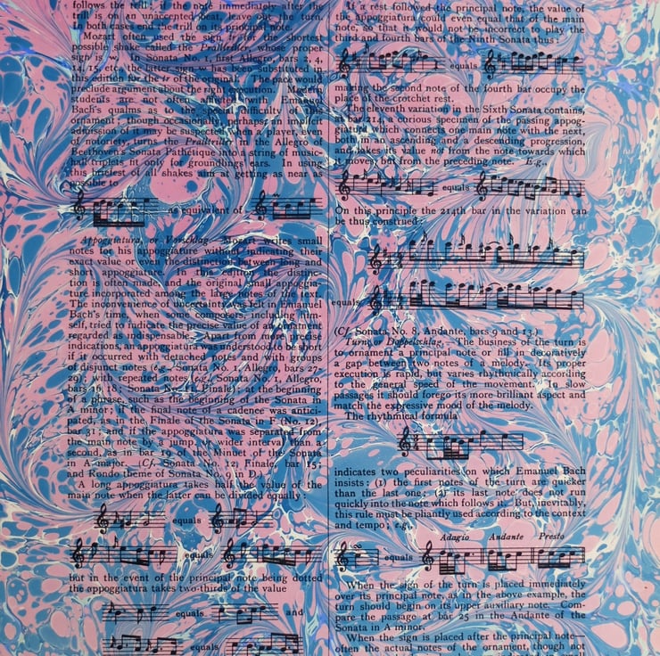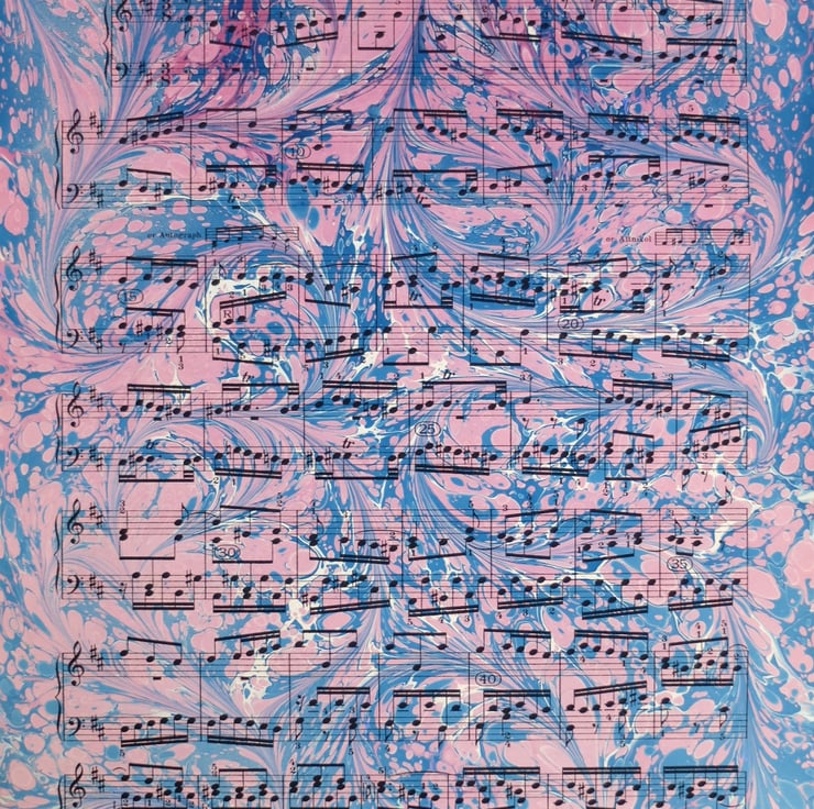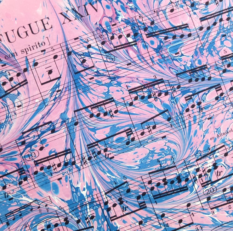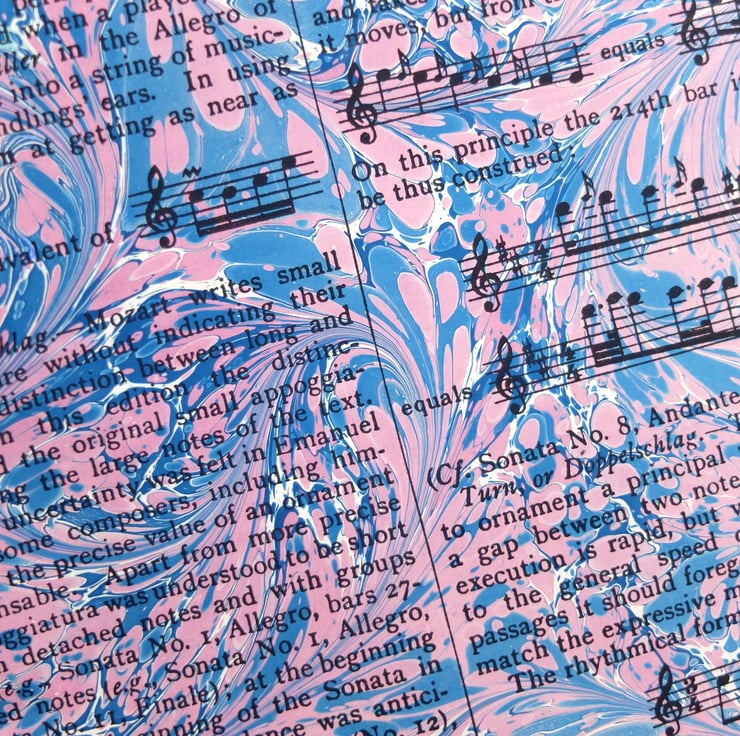 I came across some beautiful etched music related ephemera and realised it was perfect for marbling!