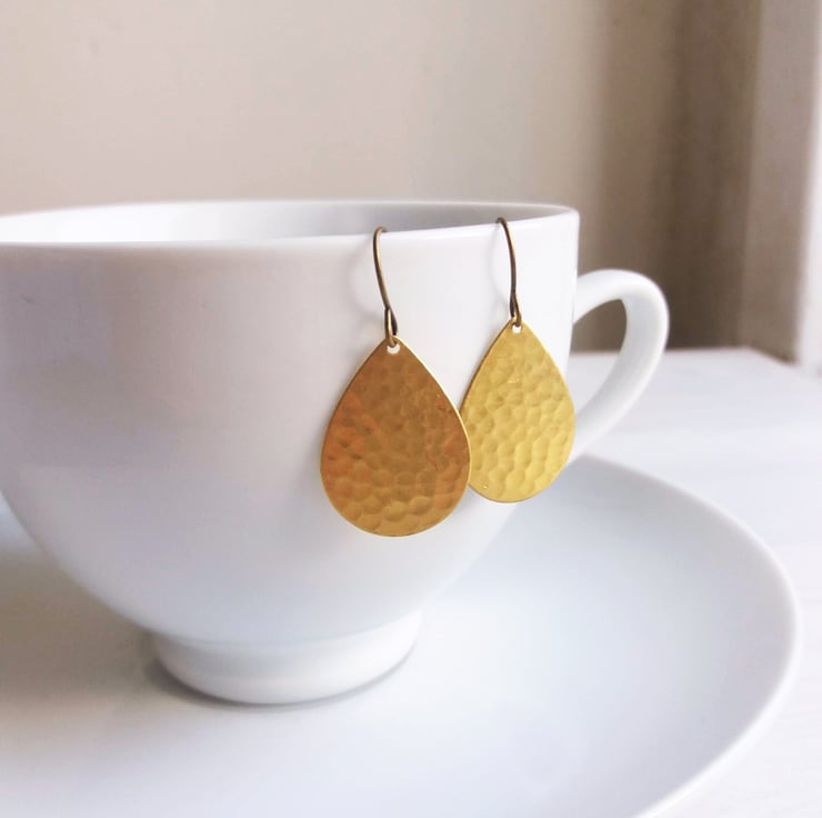 Gold Hammered Teardop earrings - Golden Sun - raw brass - textured