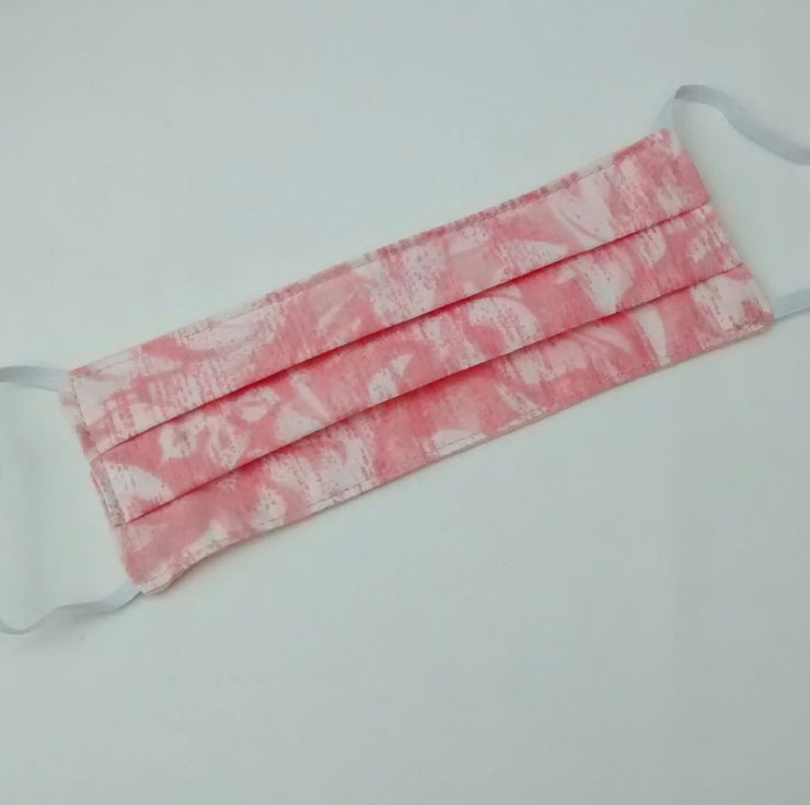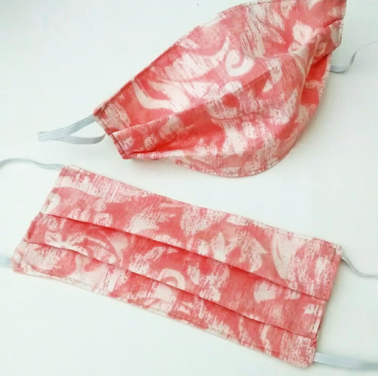 Face mask, face covering made from 2 layers of cotton fabric with elastic. Non surgical face mask for wearing when shopping or out and about on public transport. Soft to handle fabric and breathable.
