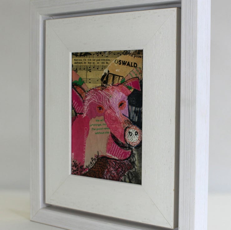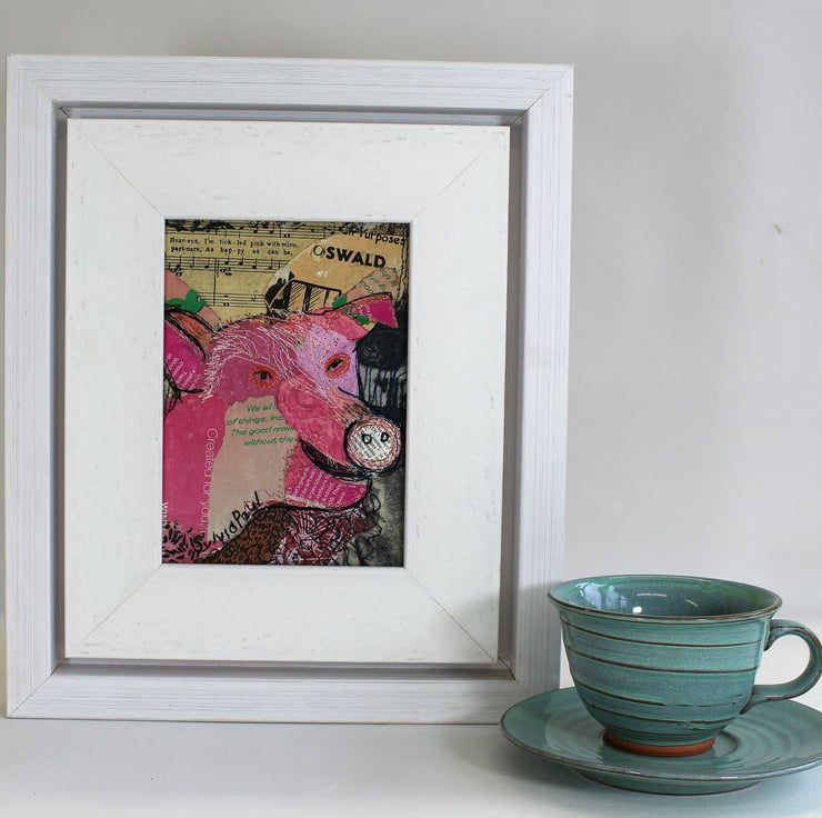 I created this piece of original art using paper collage and free motion machine embroidery. The piece is protected with a UV filter varnish and beautifully framed. The picture measures12.5 x 17 .5 cm and including the double frame it measures 28 x 33 cm.