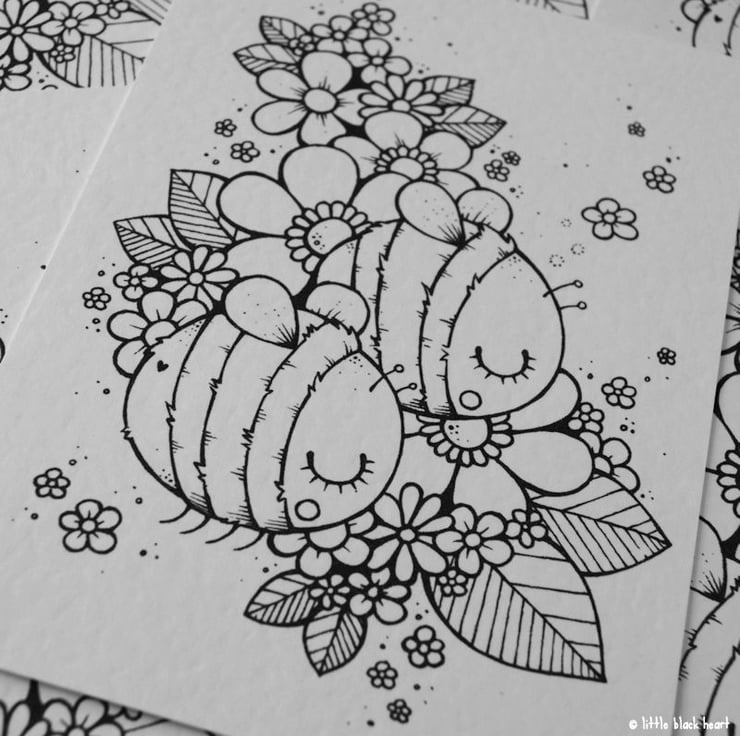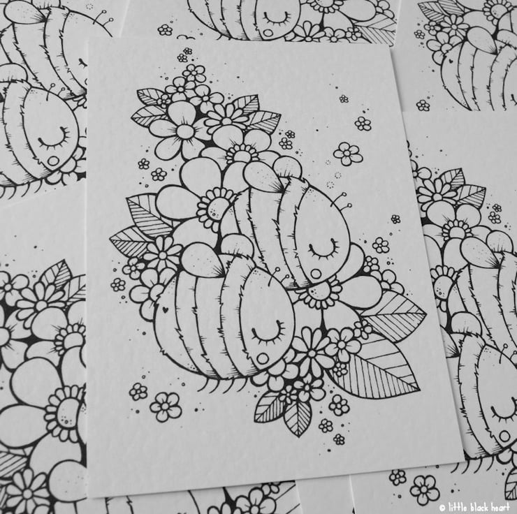 if you like bees, and blossom, and colouring in, then you might have some fun with this black and white print!