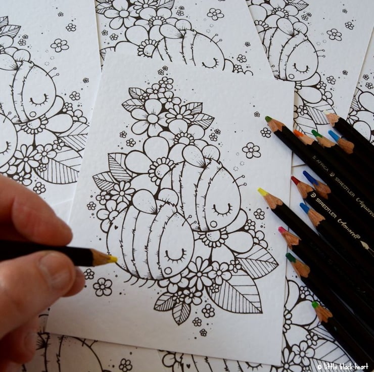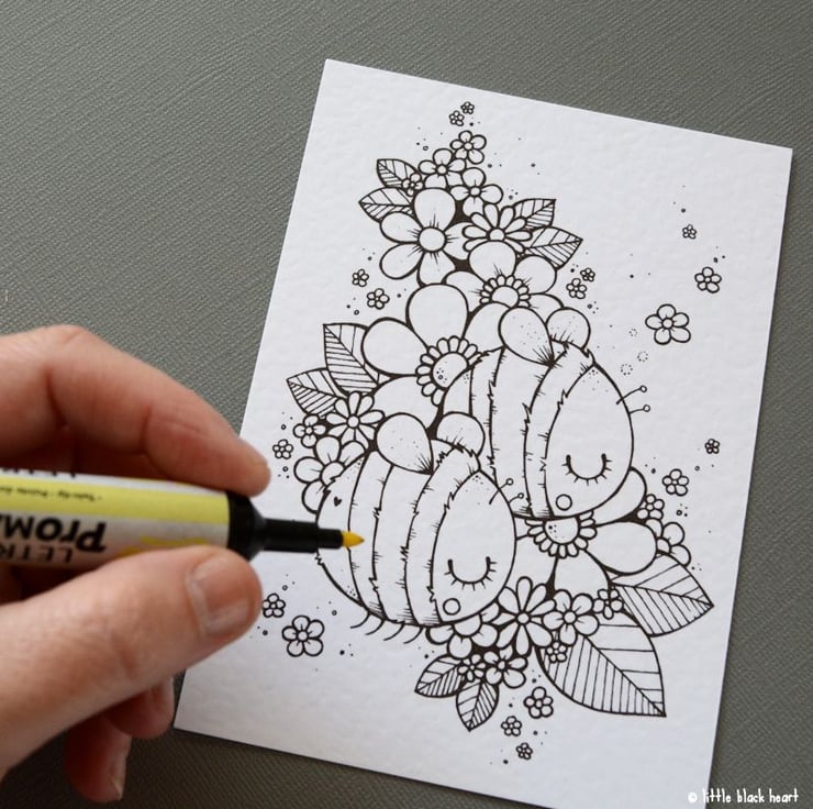 great for use with art pens, coloured markers, coloured pencils, crayons, or any other 'dry' art media you wish to use.
