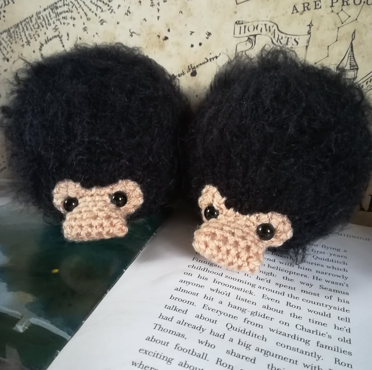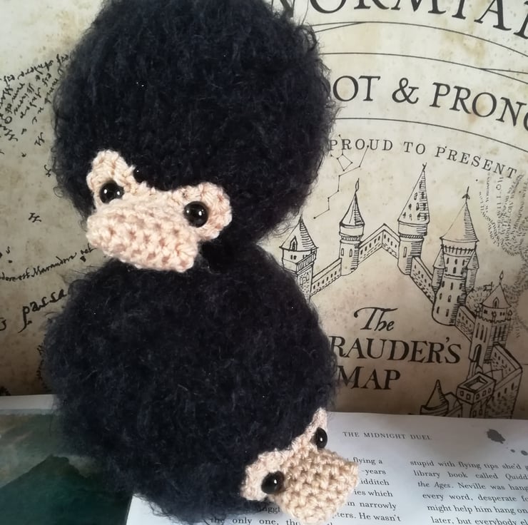This pygmy puff is an extra special limited edition Niffler Puff.... These are very rare and hard to find.