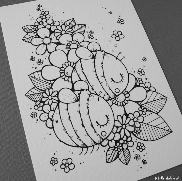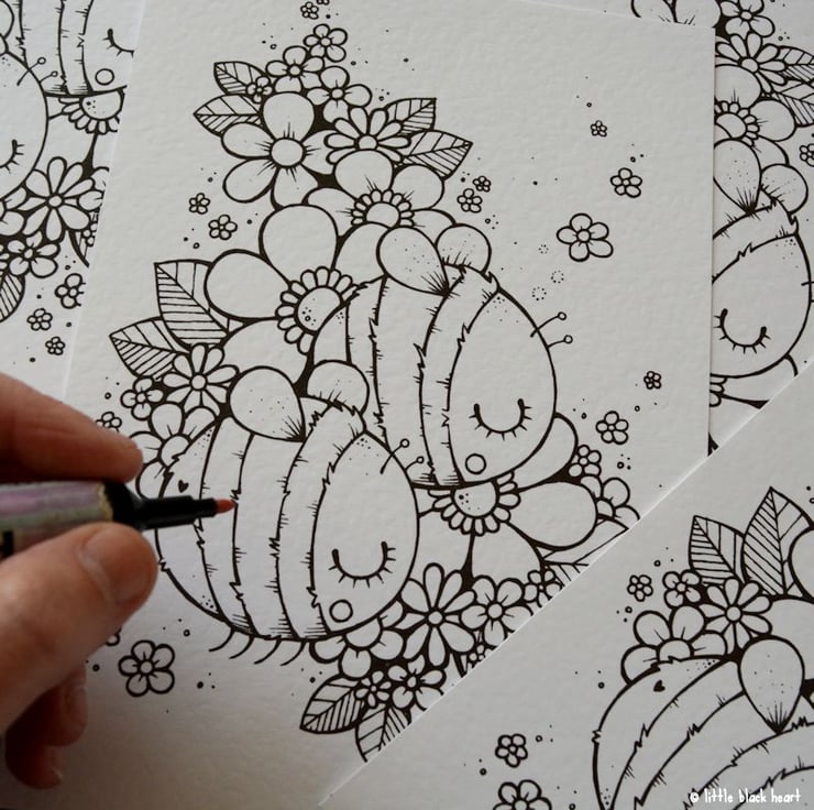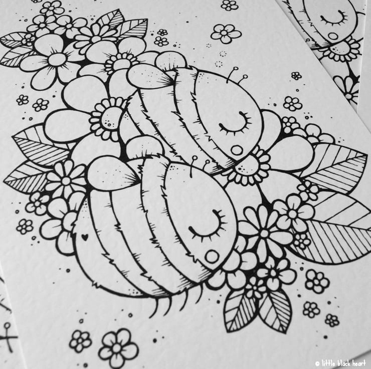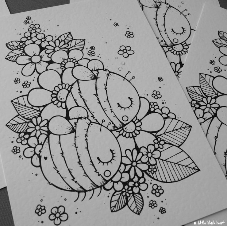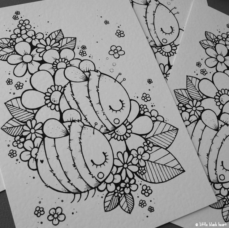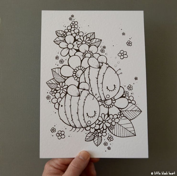 if you like bees, and blossom, and colouring in, then you might have some fun with this black and white print!