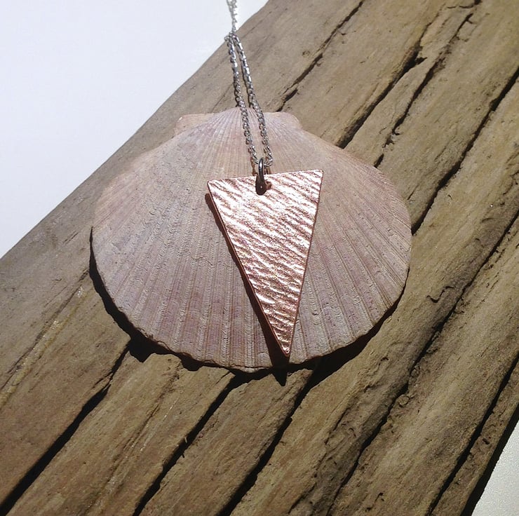 This lovely pendant has been hand sawed from copper sheet and given an attractive hammered texture.