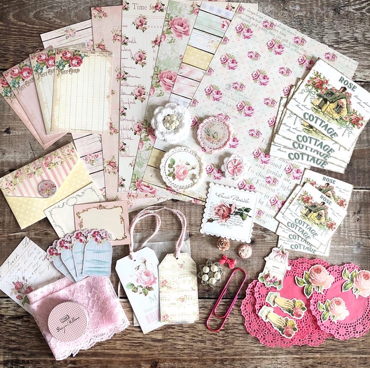 Beautiful Shabby chic inspiration kit in lovely soft pastels.