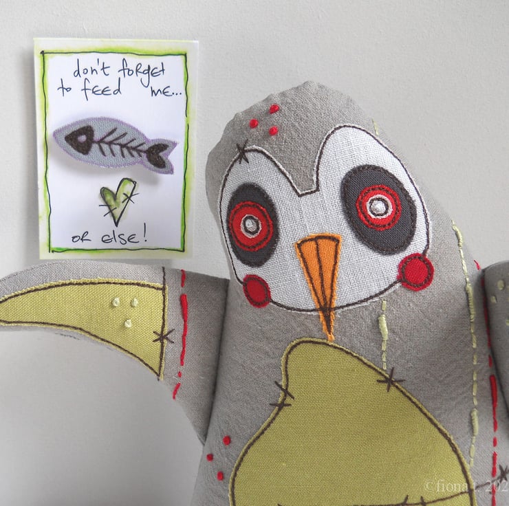 the penguins themselves have been made entirely on a domestic sewing machine, everything is cut, stitched & drawn freehand by me.