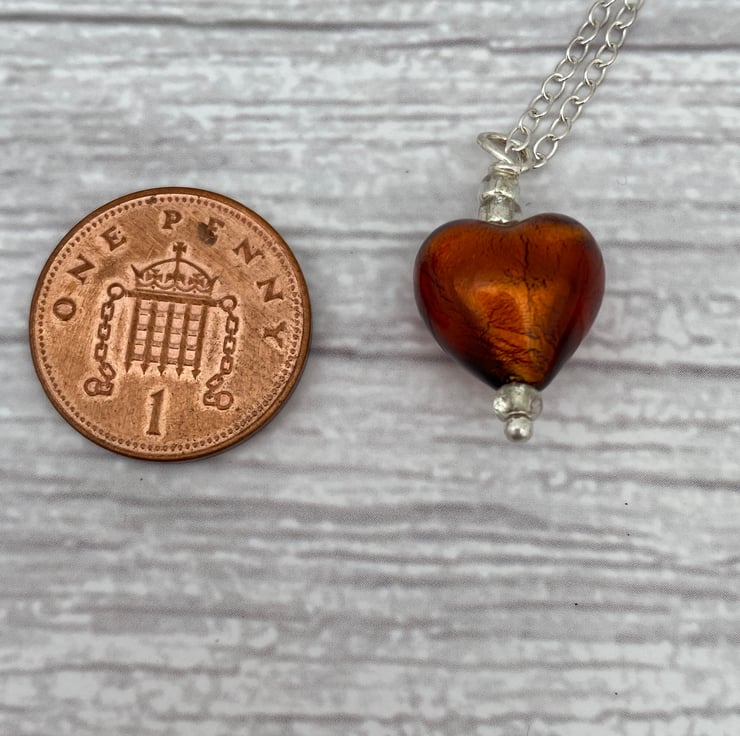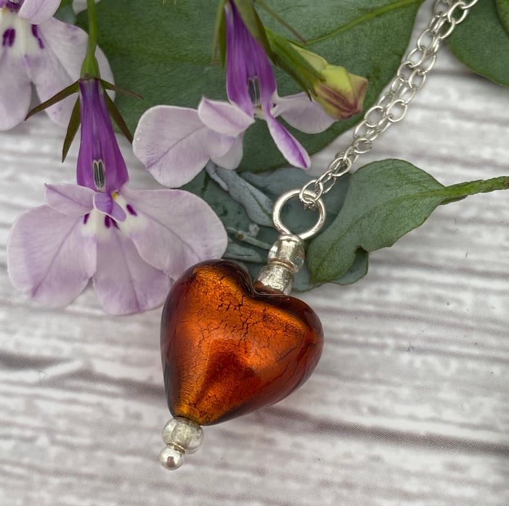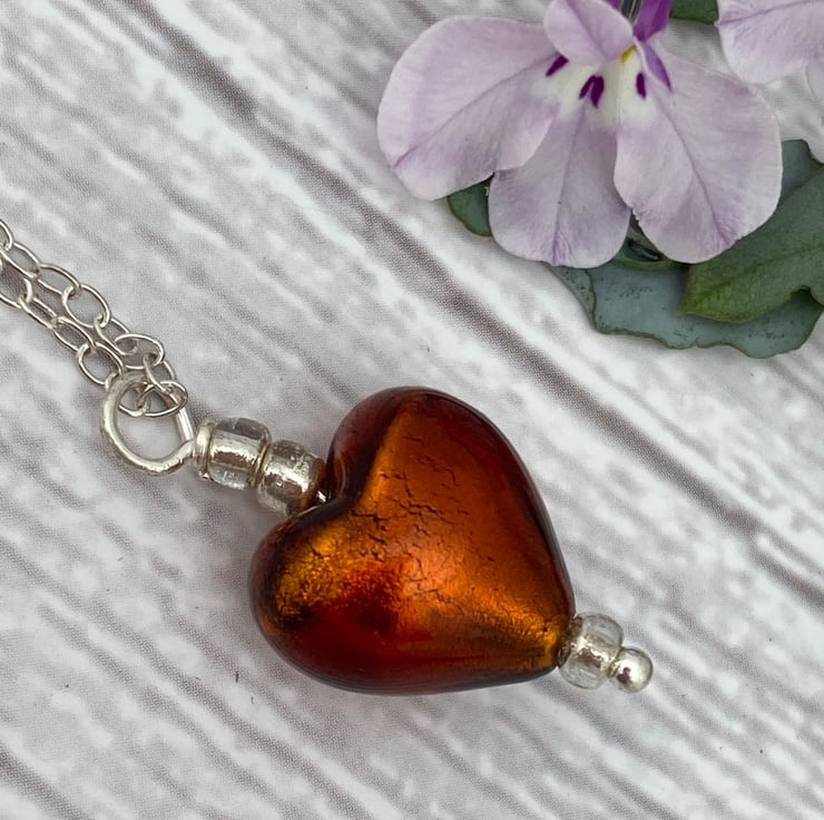 Bronze Heart Necklace. Venetian Murano Glass Heart Pendant