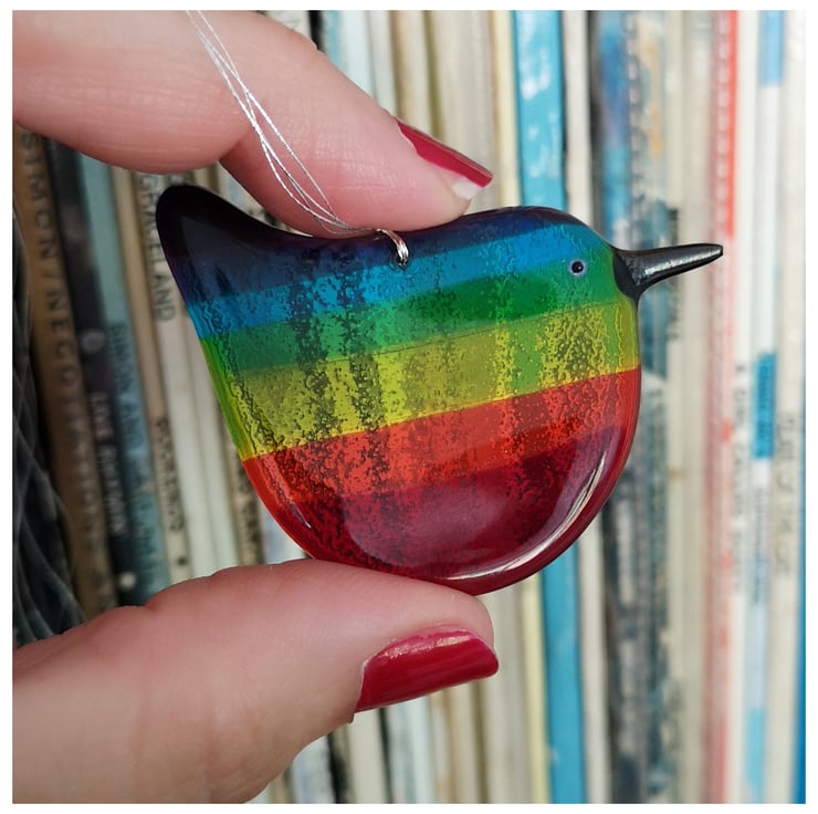 This purchase is for one chunky 'Rainbow Wren of Hope'. It is suspended from a length of silver thread so you can hang it in the window to spread a little hope and colour into your home and neighbourhood.