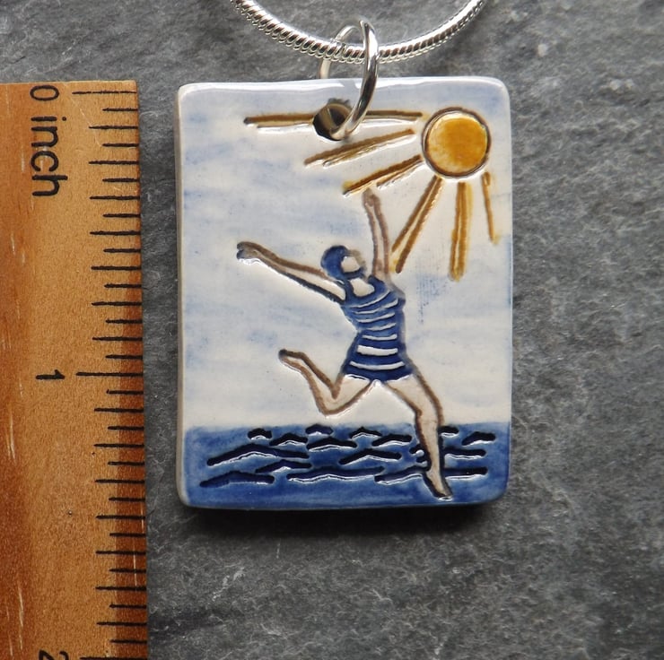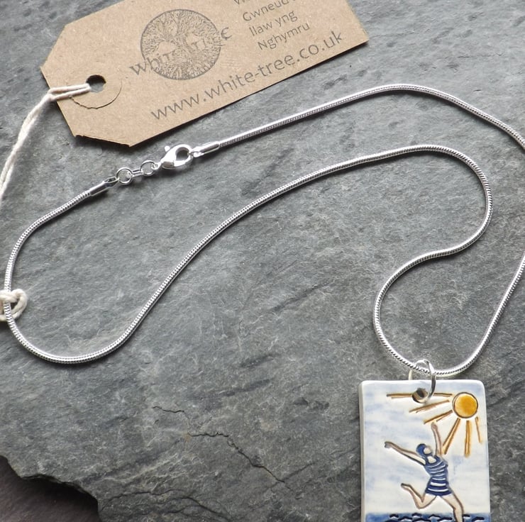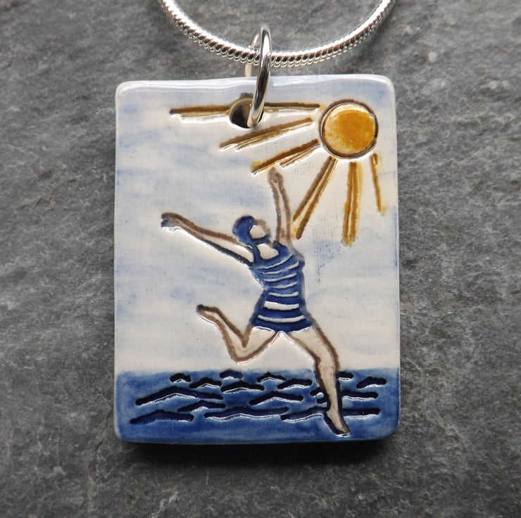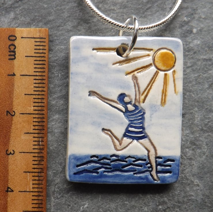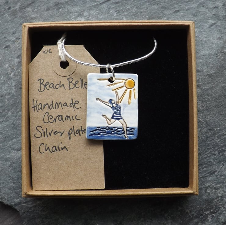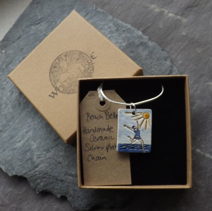 This pendant is from a range of seaside themed ceramic accessories, celebrating my love of swimming, the beach and sunny days.