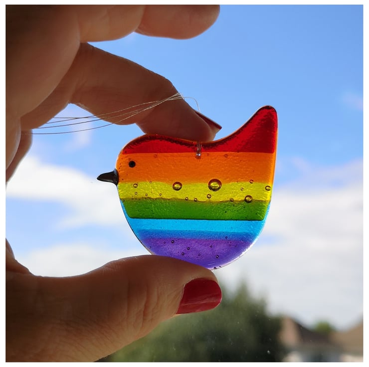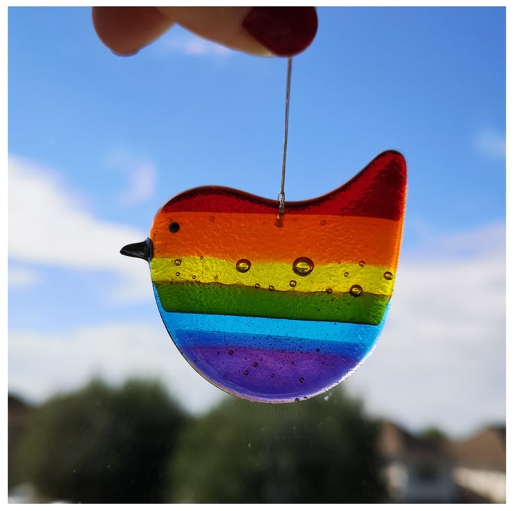 This purchase is for one chunky 'Rainbow Wren of Hope'. Bubbles is suspended from a length of invisible thread so you can hang it in the window to spread a little hope and colour into your home and neighbourhood.
