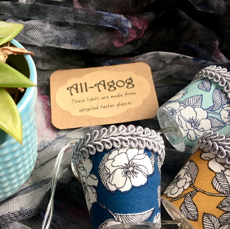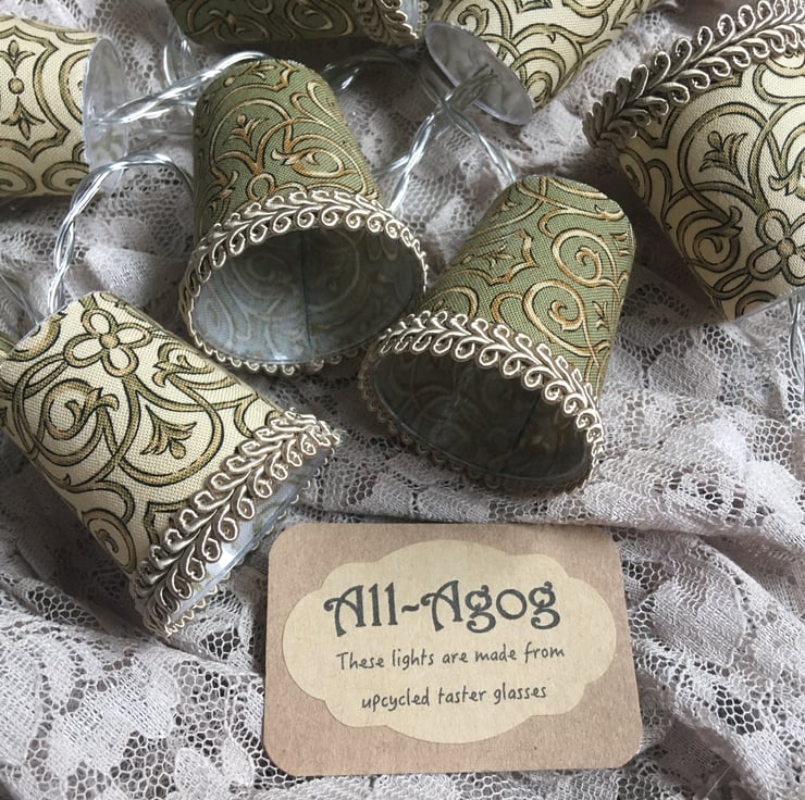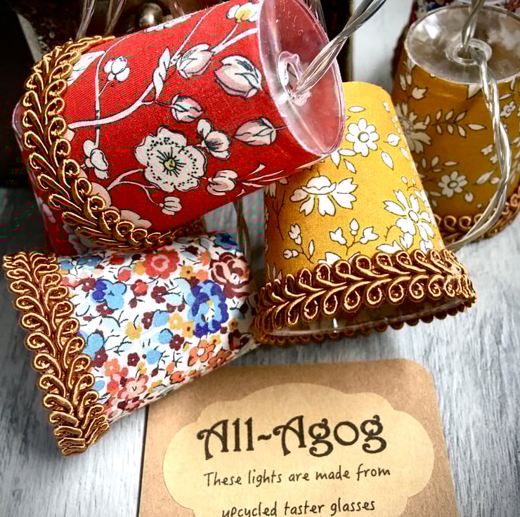 Please be aware that the lampshades vary in size depending on the taster glasses I have been given - they vary from approximately 4cm to 6cm in height, and are various diameters. I always ensure that each string of lampshades are the same size.