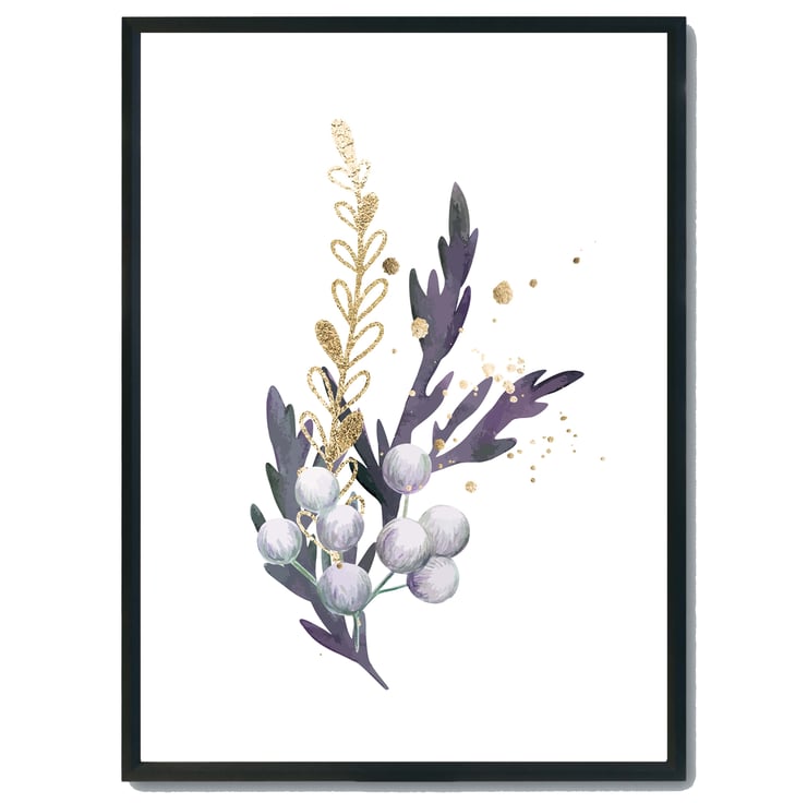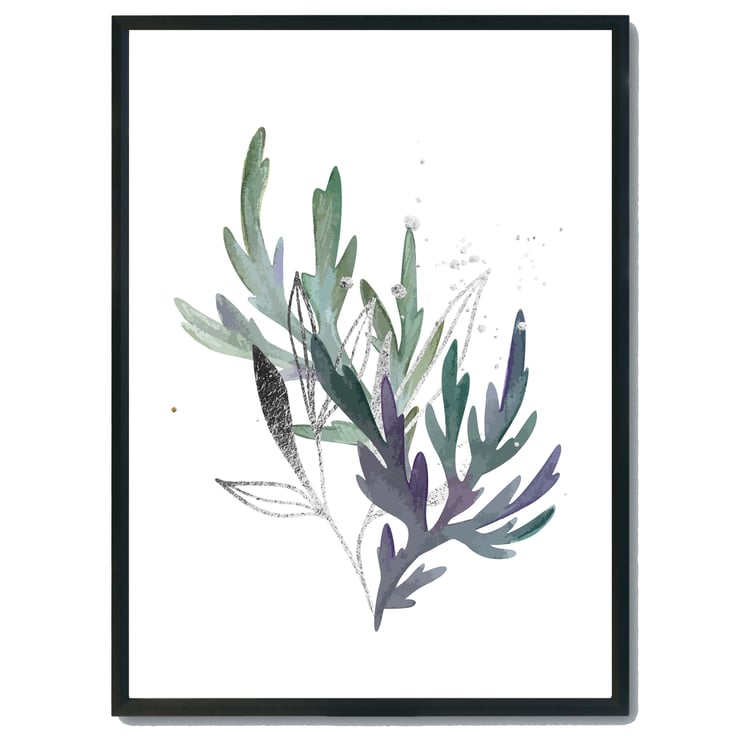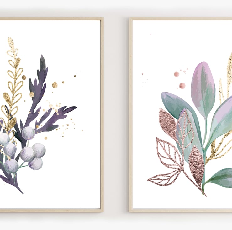 Watercolour leaves wall prints, purple plants wall decor, leaf wall art prints