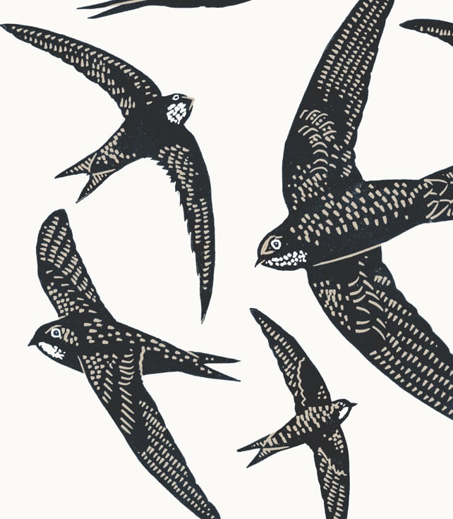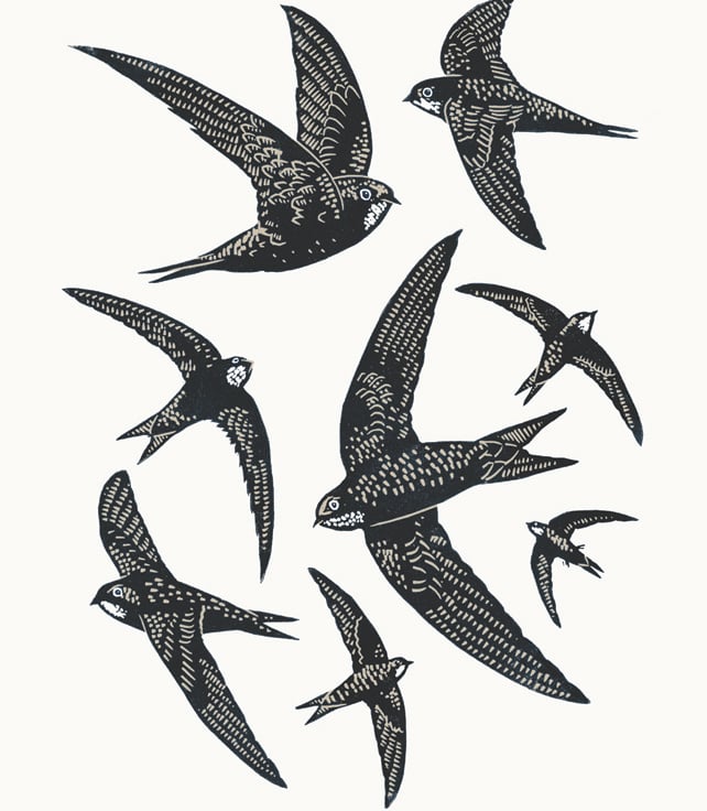 I'm inspired by a lot of wildlife native to the UK, especially birds I can see from my garden. I thought a flight of swifts might make a good linocut subject, and work well alongside my 'swallows' print.