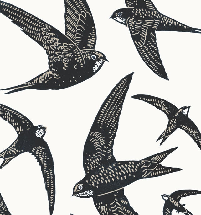 This is an A3 poster-print entitled 'Swifts' printed in dark grey and light brown.