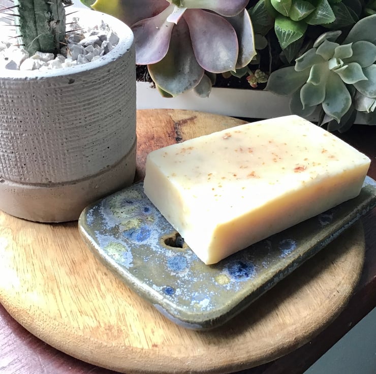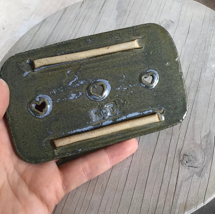 Hand washing is mundane let’s face it so anything that can bring a little joy into an everyday task is always good. This is a new glaze I’m trying out, it’s a beautiful mottled crocodile green that fires with lots of surface interest. I added a few white crystals to it before firing which has created the lovely little bursts and blobs.