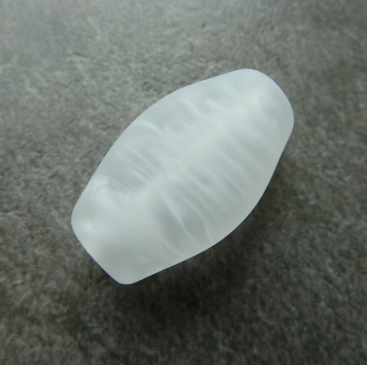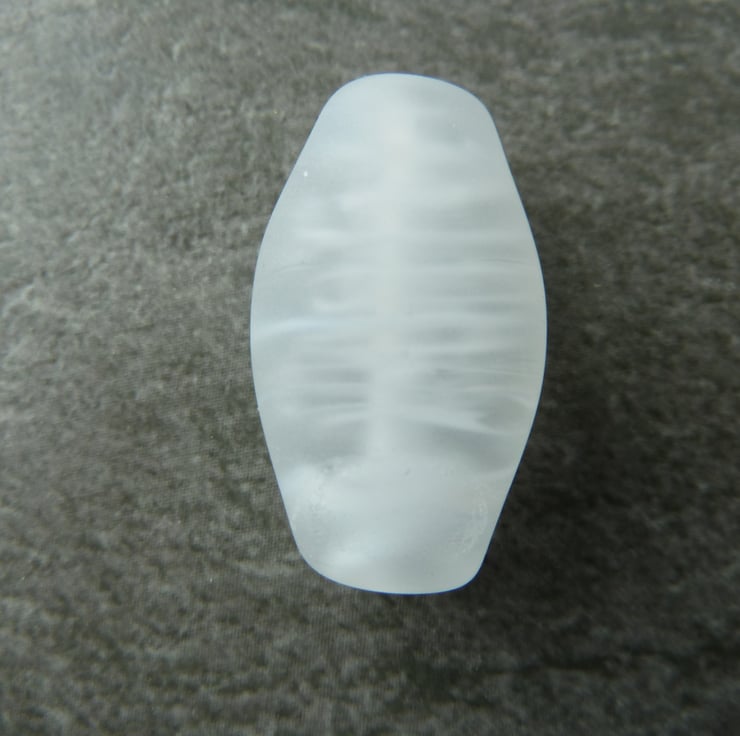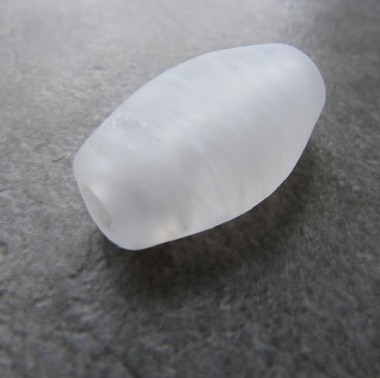 A lampwork glass focal bead made with clear and white glass, it has been hand shaped and tumbled to give a frosted finish.