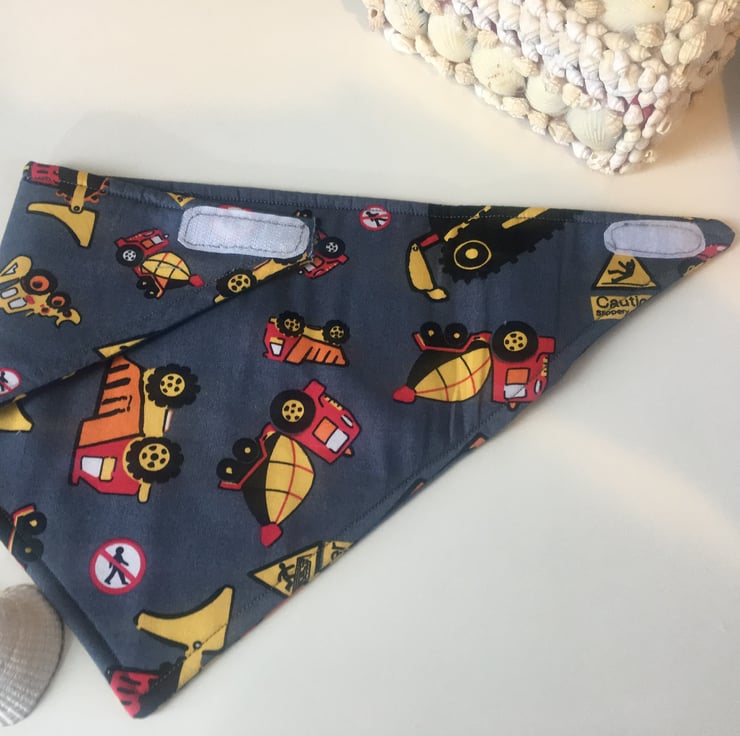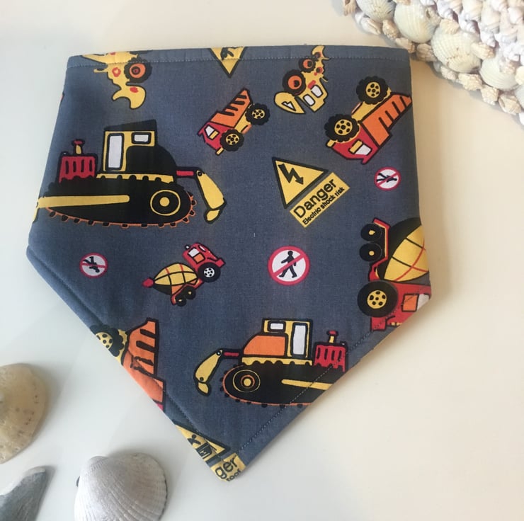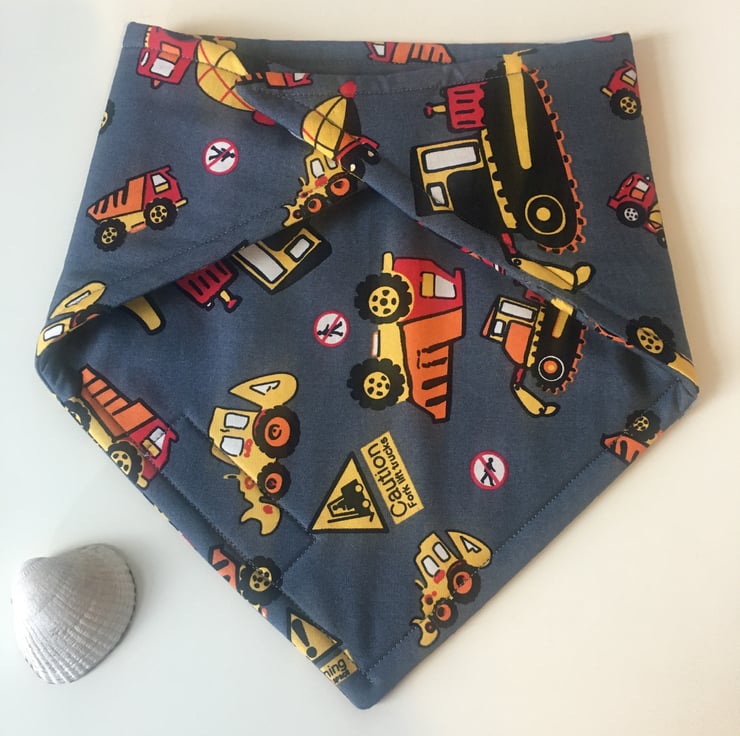 My young Grandson loves diggers, vans and cars so when I saw this fabric a baby bandana came to mind.
