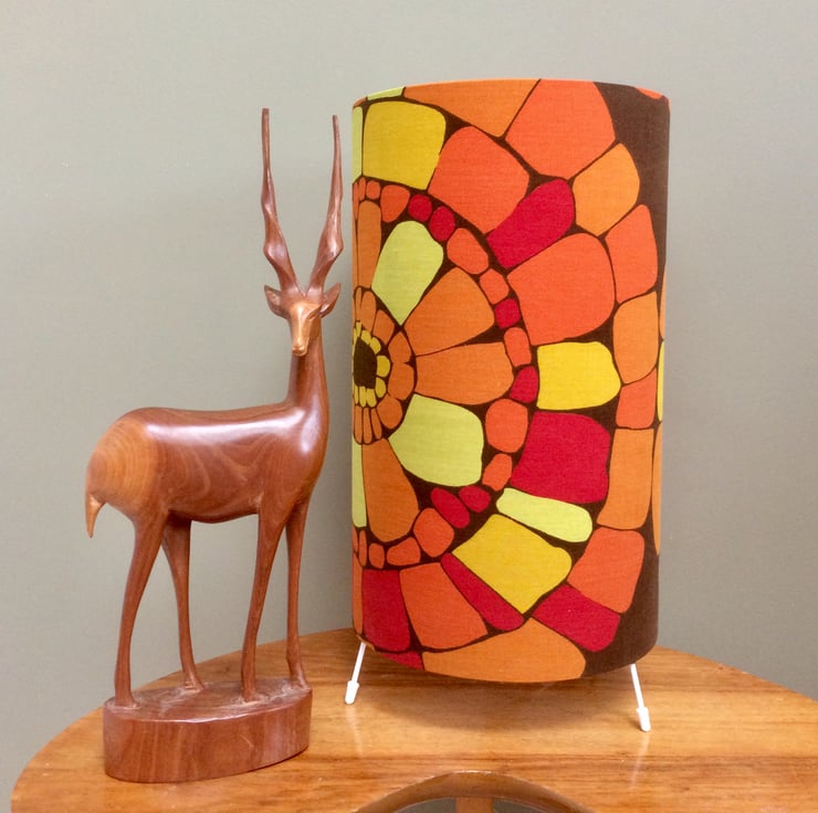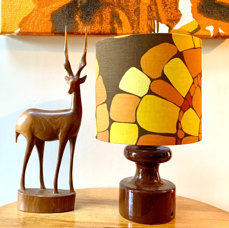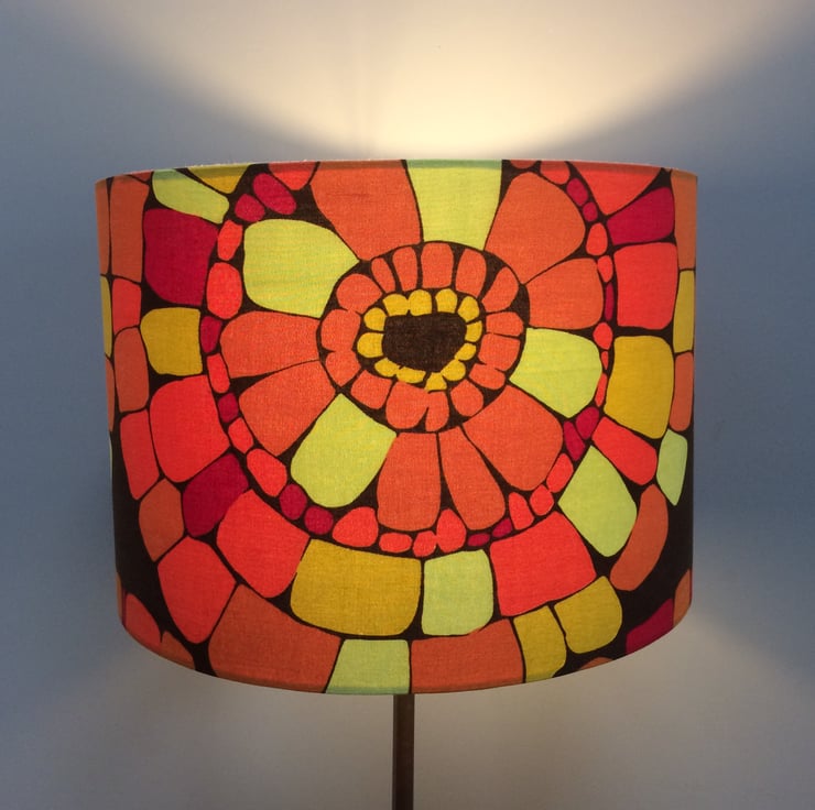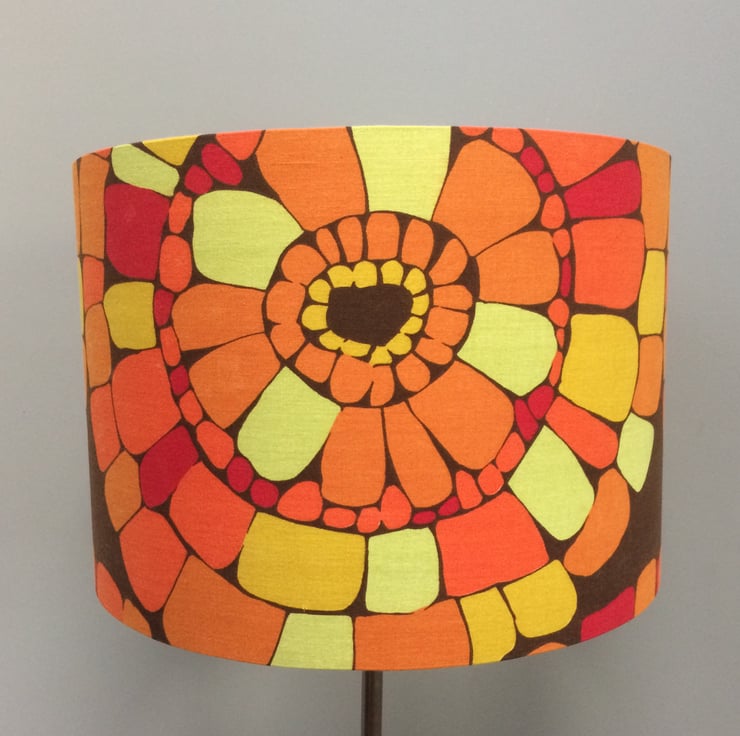 60s 70s Bright Orange Brown GROOVY Druid Sanderson vintage fabric Lampshade option - striking fabric for a lampshade in a modern, vintage or retro home. WOW!
