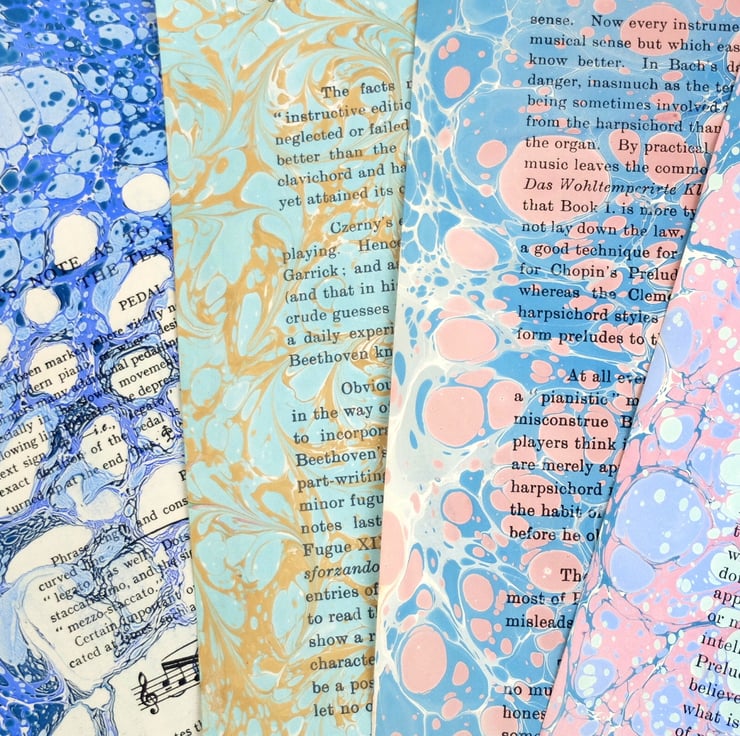 Four lovely marbled music related vintage ephemera sheets in a range of different colours and patterns.