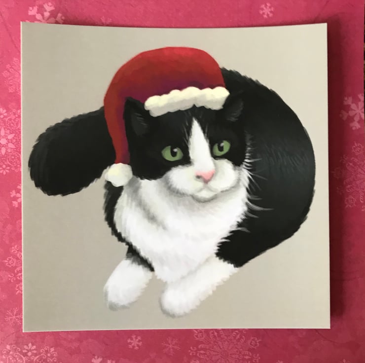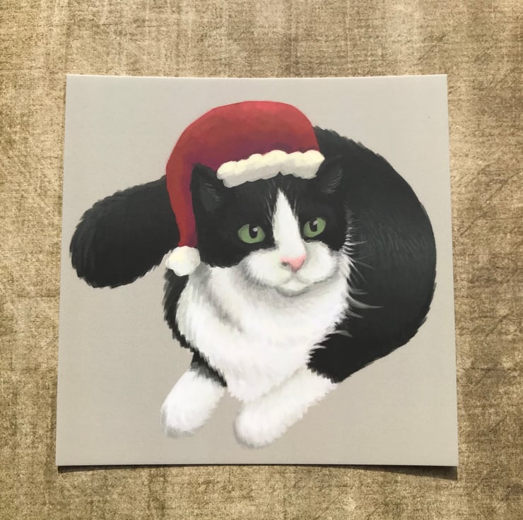 Christmas Cat Square Post Card Print