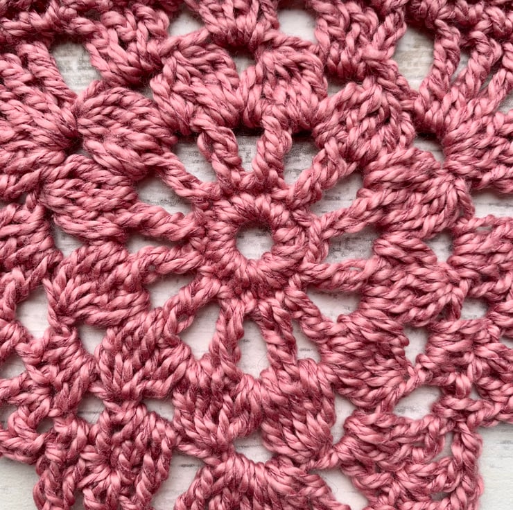 It is made from super soft cotton and silk DK yarn in a classic rose pink yarn with wooden beads on the tassels. Each triangle measures approximately 25 x 15 cm / 9.5 x 5.5 inches including the tassel.