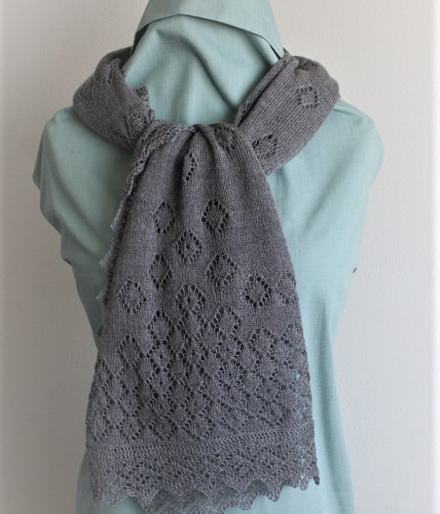 I have hand knitted the scarf in 1 ply merino yarn, which is spun in Italy. The high quality, luxurious yarn, produces a scarf that is wonderfully soft, light, and warm to wear.