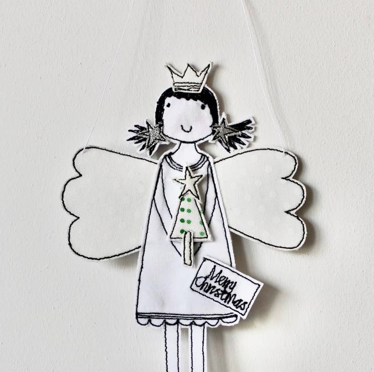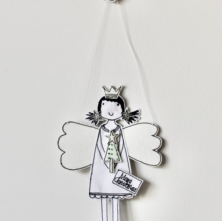 Meet this special little fairy, she wears a glittery crown on her head, is holding a little Christmas Tree and has a sewn fabric label 'Merry Christmas'.