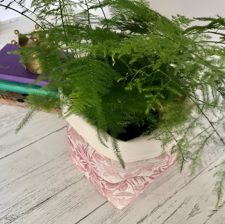 The finished pot is 19cm high (unfolded) 16cm high (folded as shown). Base 14cm x 14cm approx.