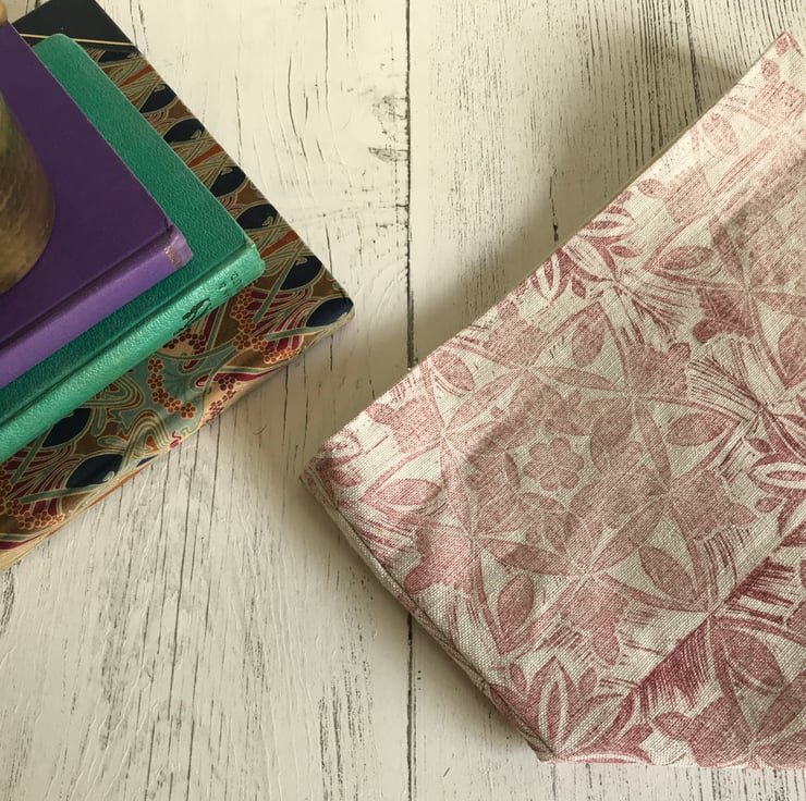 I hand carve my unique designs on to lino blocks then hand print on to fabric woven locally in Fife. I mix the Eco-Friendly water-based inks in small batches, therefore there may be a variation in colour between subsequent batches