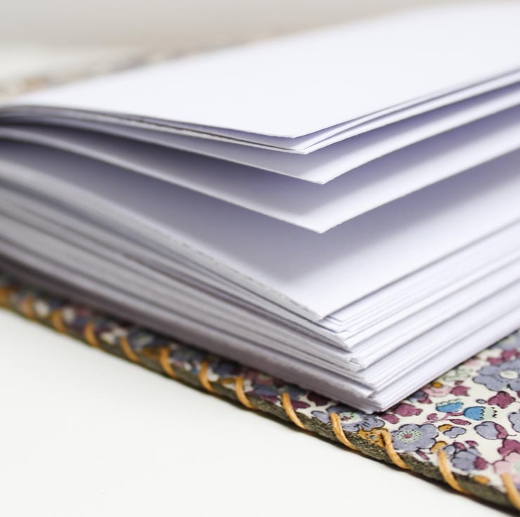 All lined with a gorgeous floral (or non floral) fabric and filled with plain paper, lined paper, recycled paper or watercolour paper.