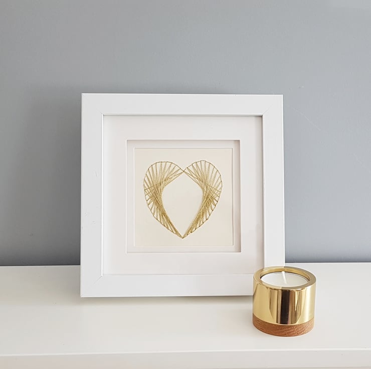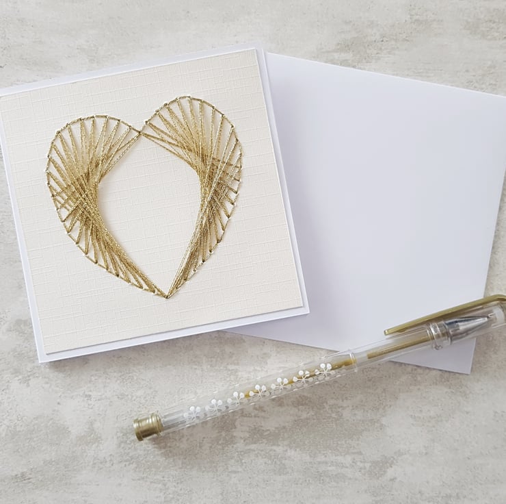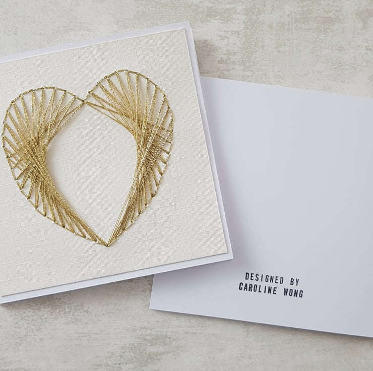Heart Hand Stitched Gold Card, Wedding Card, Anniversary Card, Valentines Card