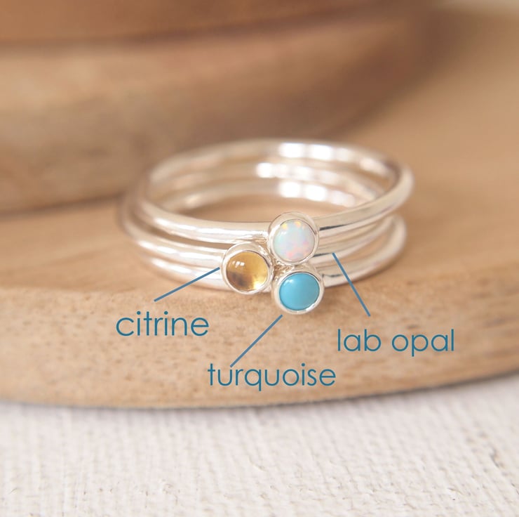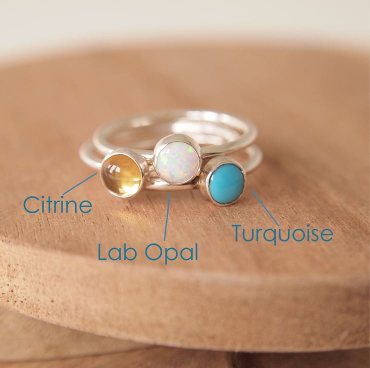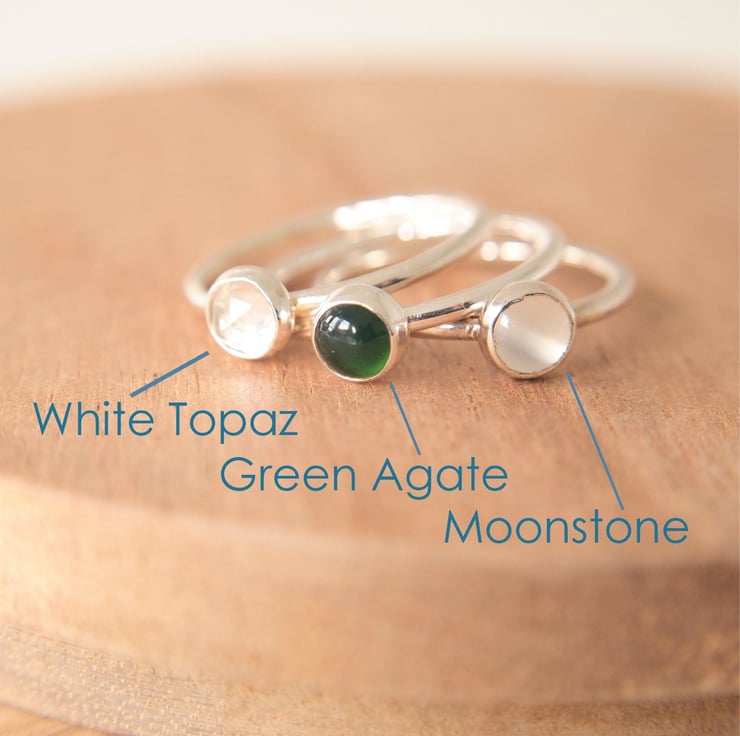 I make a lot of custom birthstone sets that tell the story of your family, but it's often tricky to visualise what your set will look like.Get in touch if you want to see yours - I often have made up a similar set or can make up a mock-up as I keep a small stock of birthstone rings ready to go