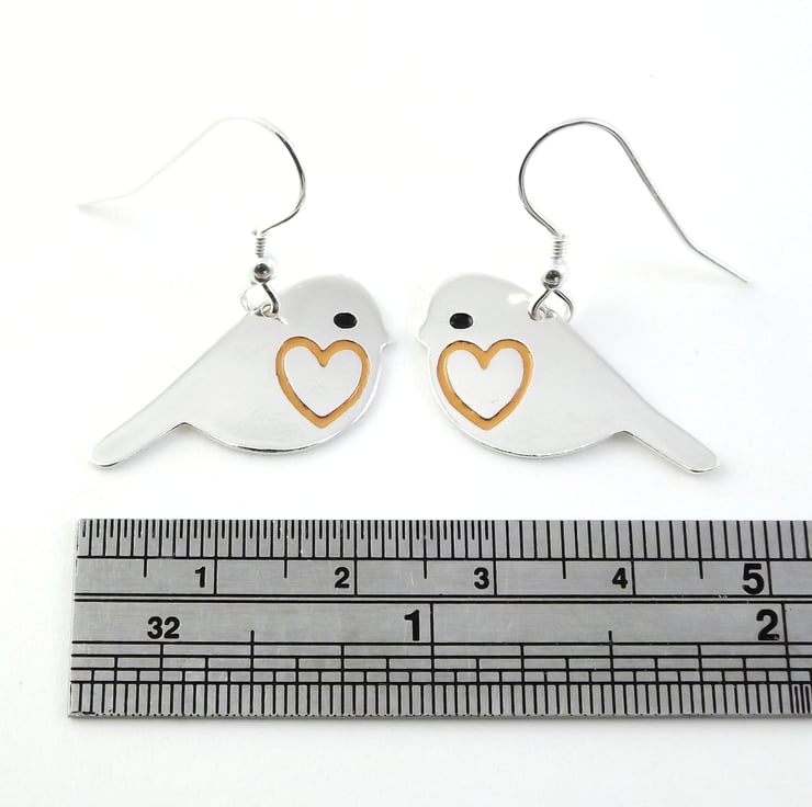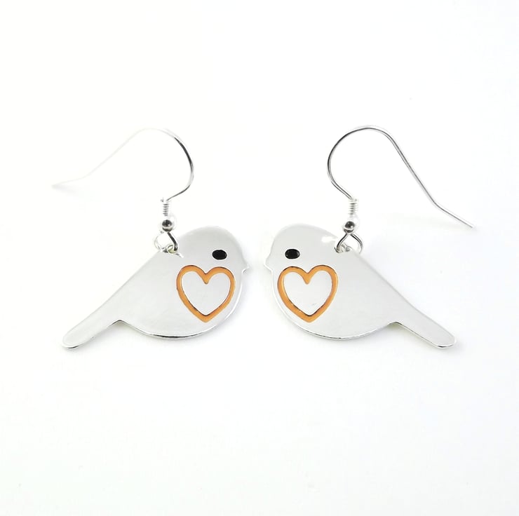 Robin Drop Earrings, Silver Bird Jewellery, Handmade Nature Gift for Her