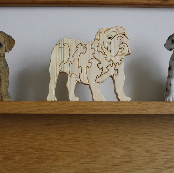 This unusual wooden Bulldog Jigsaw Puzzle, has been upcycled from reclaimed wood. This beautiful dog would make a lovely table centerpiece or ornament for animal lovers. It would make a perfect gift for numerous occasions such as a best friend gift, housewarming gift or a birthday present.