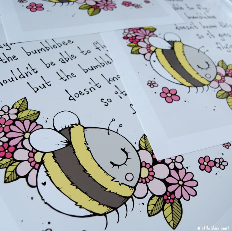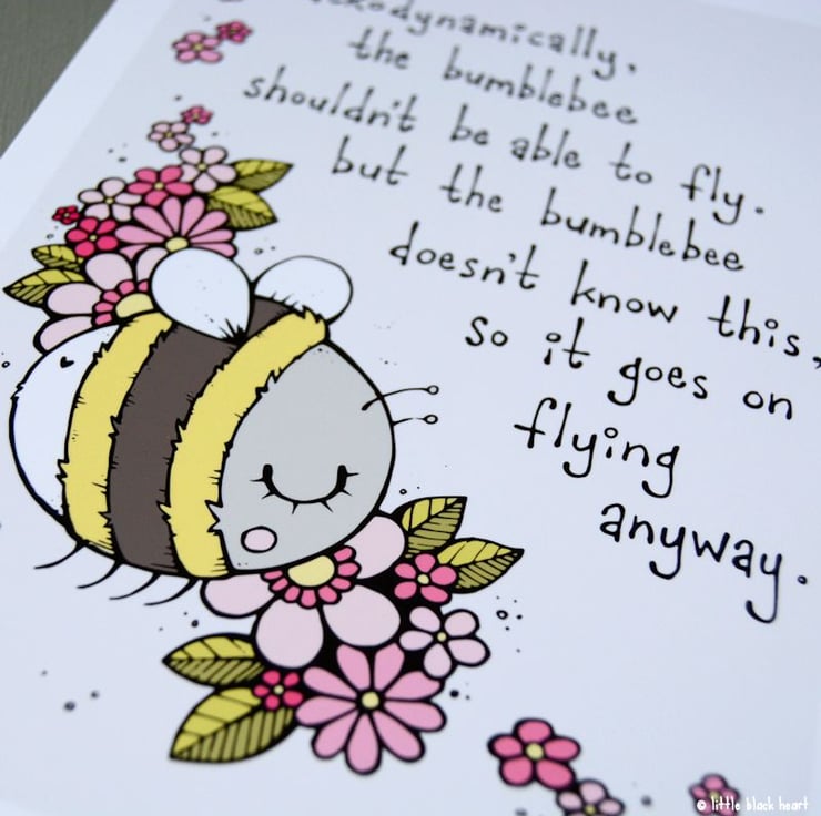 a bumblebee surrounded by pink blossom, who cares not for his limitations.