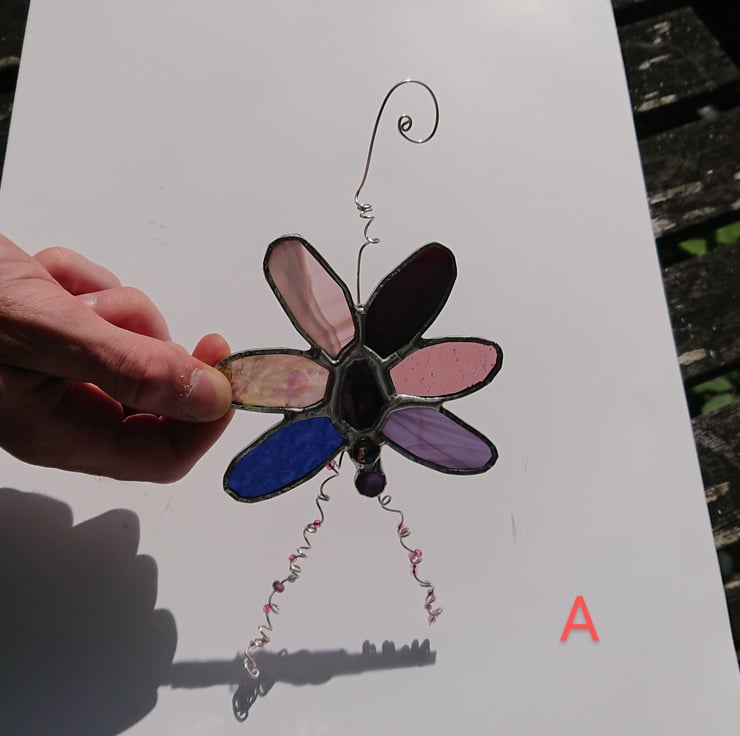 Stained glass purple and pink agate suncatcher hanging decoration.