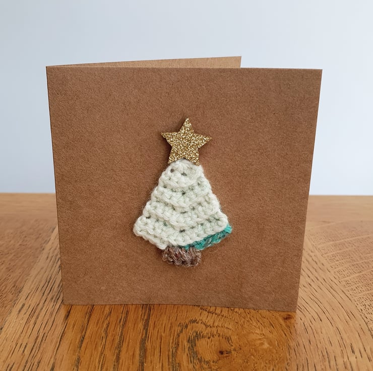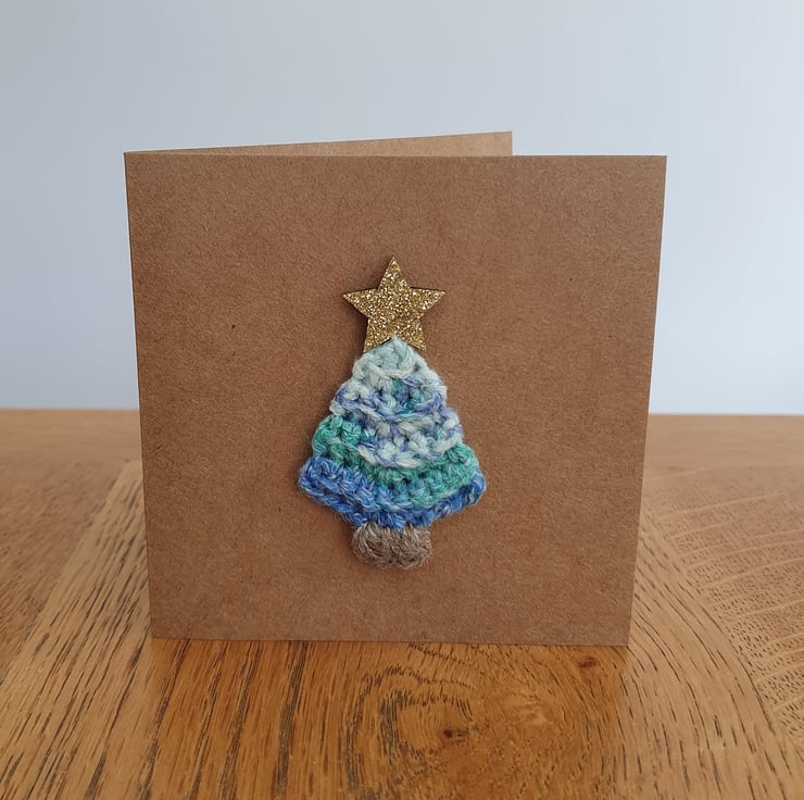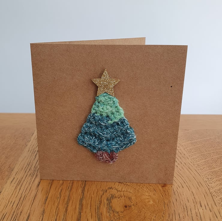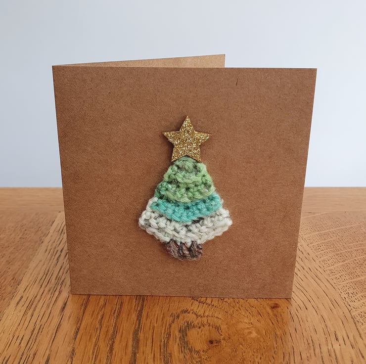 Adorable little 4x4" kraft cards featuring tiny crocheted Christmas trees in a variety of colours. Each tree was stitched using Sirdar Crofter DK, which has a lovely rustic feel to it, and a self stripe colour. I have topped each tree with it's own gold sparkly star.